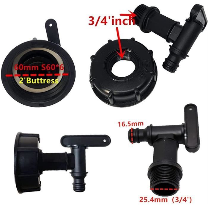 ▶ Spécifcations: Tout neuf et de haute qualité. ▶ GARANTIE SATISFACTION – Notre service client se tient à tout moment à votre disposition pour vous assister. Robinet Cuve 1000l Plastique avce Raccord Tuyau d'arrosage, Adaptateur de Robinet de Réservoir IBC, Connecteur à Filetage 3/4 Pouces Pour Recuperateur Eau de Pluie, Réservoir de Carburant Connecteur de Cuve 1000L, Résistant aux acides et aux alcalis,raccord de Tuyau de Jardin 16/20/25mm,S60x6 Adaptateur De Réservoir d'eau IBC,Port de Sortie... ▶ APPLICATION - Ce produit peut être utilisé comme interrupteur à contact rapide, qui est pour la vanne de tonne IBC. Raccord Ibc 1000 Litres Kit De Raccordement IBC, Adaptateur IBC Kit De Connexion Pour Cuve IBC, IBC Raccord Cuve 1000 Robinet Pour Cuve De 1000 Litres Ce produit peut être utilisé comme interrupteur à contact rapide, qui est pour la vanne de tonne IBC. ▶ TAILLES STANDARD - Adaptateur BSP robuste 60 mm / 2., 36. ▶ Caractéristiques: Matériel: plastique La couleur noire Taille: Adaptateur BSP robuste 60 mm / 2., 36 Connecteur de tuyau: 15 mm / 0., 59 ▶ Paquet: 1 × Adaptateur de réservoir IBC Robinet Cuve 1000L S60X6 IBC Raccord Robinet avec raccord de tuyau 1/2...