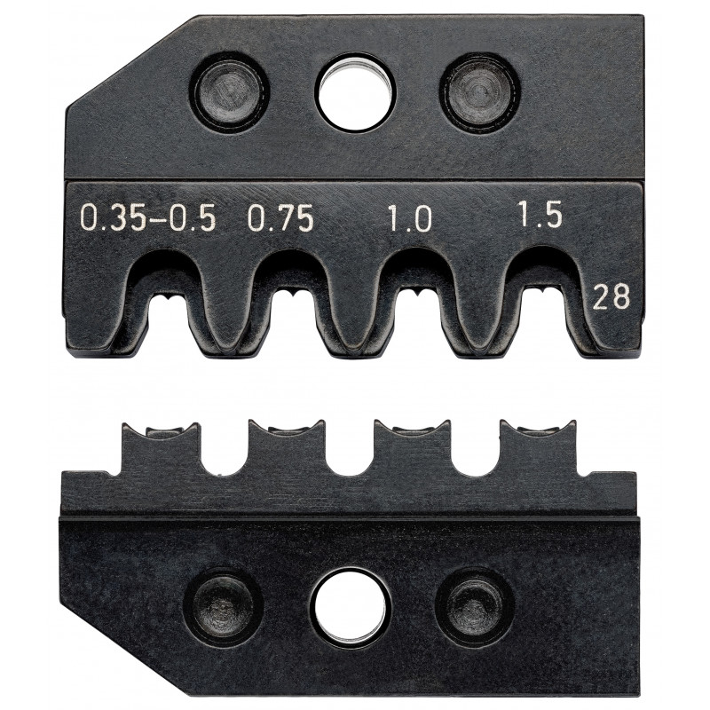 Application: cosses isolées, connecteurs + manchons Capacité Millimètre carré: 0,5 — 6 mm² Matrice de sertissage pour embouts de câble , Métal , Durable 97 39 06 EAN 4003773070085 Poids 45 g Dimensions 32 x 12 mm conforme REACH ne contient pas de SVHC conforme RoHS non applicable Application cosses isolées, connecteurs manchons Capacité Millimètre carré 0,5 - 6,0 mm² nombre de positions de sertissage 3 AWG 20 - 10 KNIPEX 97 49 06 - 4720 Matrice de sertissage pour cosses mâles et femelles pré-isolées | Mister... 97 39 09 | Matrice De Sertissage Knipex 97, Taille De Fil 10 → 16mm² Matrice à sertir Knipex 97 49 06 0.5 à 6 mm² adapté pour marque
