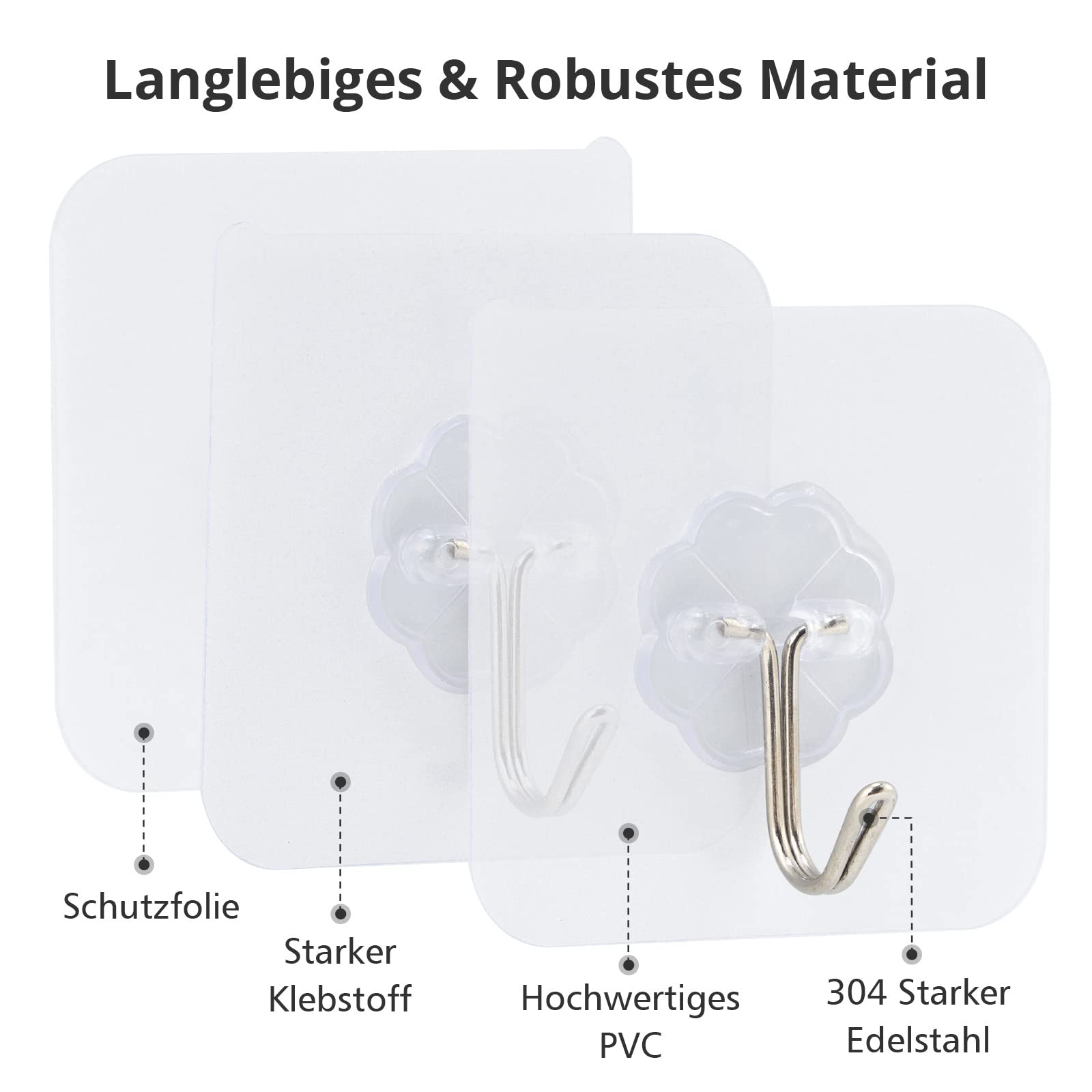 Ils peuvent vous aider à organiser votre cuisine et à tirer le meilleur parti de votre espace cuisine., 2., Très approprié pour accrocher des objets de Noël Le crochet collant est transparent, prend peu de place et n'altère pas la décoration. Ils peuvent donc être utilisés n'importe où et sont parfaits pour accrocher des œuvres d'art murales, des carillons éoliens, des décorations de Noël et plus encore., 3., Outils d'organisation de la salle de bain Les crochets autocollants sont extrêmement étanches. Convient pour la cuisine, la salle de bain, la chambre, le bureau, etc. Crochet de Porte Cuisine Crochets Adhésif Transparent Imperméable Réutilisable Serviette Crochets Muraux 13.2 lb/6kg Max pour Maison Salle de bain Vêtements Chapeaux Sacs (6-Pack 1., Organiser la cuisine Nos crochets autocollants sont résistants à l'eau et à l'huile. Les crochets collants sont imperméables et adaptés à une utilisation dans les salles de bains. Crochet Adhésif - 6 Pièces Crochets Adhesifs Transparent Auto Adhesif 5... pour économiser de l'espace. Large application : le crochet collant peut être utilisé pour accrocher des serviettes, des clés, des cuillères, etc. Le crochet autocollant peut supporter 5 kg et convient pour suspendre des accessoires de cuisine et de salle de bain. Attention : laisser reposer 24 heures avant d'accrocher quoi que ce soit. Le crochet collant est transparent, prend peu de place et n'altère pas la décoration. Ils peuvent donc être utilisés n'importe où et sont parfaits pour accrocher des œuvres d'art murales, des carillons éoliens, des décorations de Noël et plus encore. Très collant, ne pas utiliser sur les murs peints, les murs...Paquet de 30 crochets auto-adhésifs, Crochets Transparents... Accroche Porte 10 Pièces Crochet Adhésif Transparent, 30 Kg (Max), Accroche Murale Accroche Salle De Bain Le crochet magique mesure 6 x 8 cm, ce qui est suffisant pour un usage quotidien.