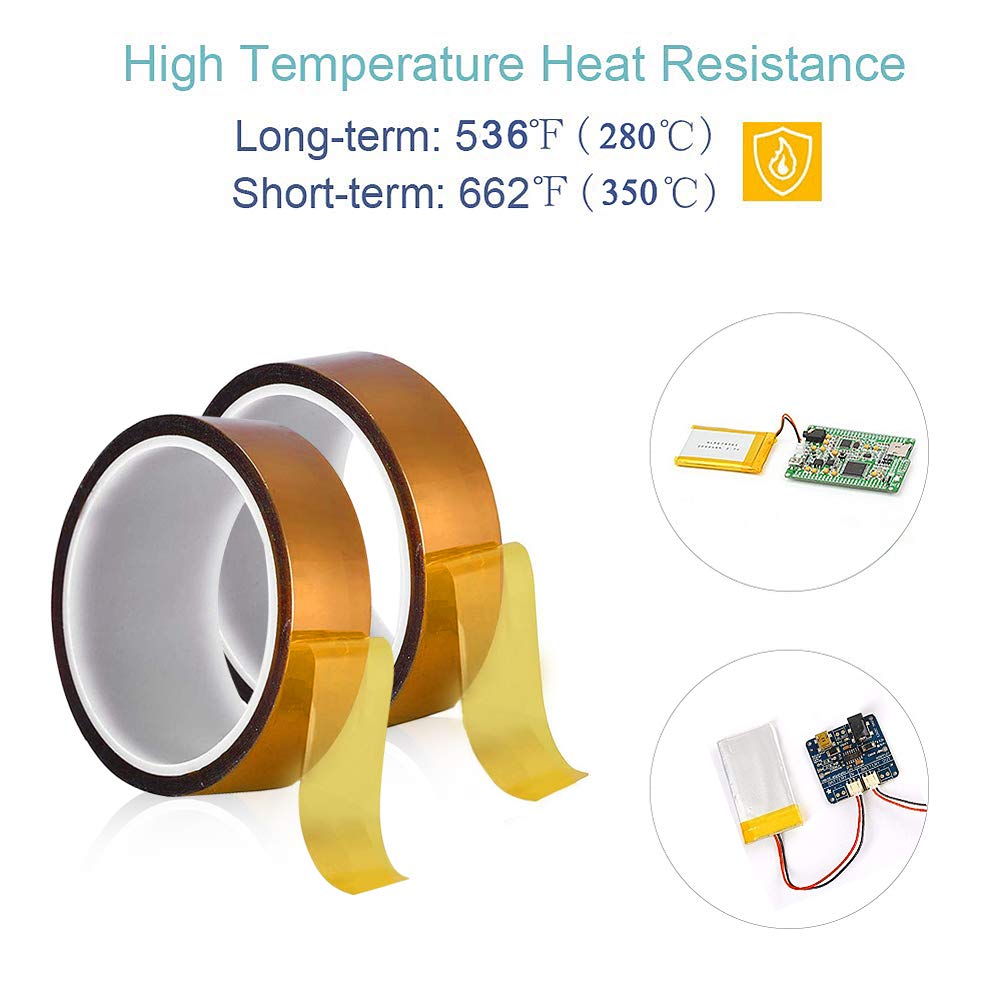 Ruban Kapton 100% neuf et de haute qualité, résistant à la chaleur avec film polyimide., Fonctions: 1., Ruban en polyimide résistant à la chaleur avec adhésif silicone haute température., 2., Isolation élevée, résistance aux hautes températures, résistance aux acides et aux alcalis, faible électrolyse, mécaniquement parfaite, résistance aux chocs, résistance à la déchirure., 3., Largement utilisé comme bande de chaleur pour les alimentations de conversion, transformateur, moteur, bobine, condensateur et fréquence dans l'industrie électronique. Senven 4Pcs kapton haute température résistant, ruban masquage polyimide, pour imprimante 3D, le soudage, le revêtement en poudre, la sublimation et les circuits isolés (33M x 5MM) × 4 Description du produit Nos produits haute performance Ruban de Kapton, également reconnu comme ruban de polyimide est une solution adhésive exceptionnelle conçue pour des applications industrielles rigoureuses. Ce ruban de qualité supérieure est doté d'un film polyimide Le support est revêtu d'un adhésif silicone supérieur sensible à la pression. Cette combinaison unique offre une... Bande Thermique Echappement ELEGOO Lot De 4 Ruban Adhésif Silicone Polyimide Kapton Résistant Aux Hautes Températures 260℃ - Longueur 30m Pour Masquage, Soudure, Carte De Circuit Imprimé Isolant DIY Ruban Adhesif Haute Temperature Parfait pour protéger les composants sensibles des cartes de circuits imprimés tels que Goldfinger lors du soudage à la vague. Ruban Adhésif Silicone Polyimide Kapton Résistant aux Hautes... Applications: Soudure à la vague Câble à fibres optiques Plaques isolantes Capteur de voiture et distributeur Fabrication de semi-conducteurs Gravure Revêtement en poudre haute température Imprimante 3D Spécifications: Matériau: film polyimide Matériau adhésif: Silicone Couleur: marron transparent Plage de température: -73 ° C à 260 ° C (-99 ° F à 500 ° F) Largeur: 3 mm, 6 mm, 8 mm, 12 mm, 15 mm (1/8 , 1/4, 3/8 , 1/2, 5/8 ) Longueur: 33 m par rouleau (36 verges par rouleau) Le package contient: Lot de 5 x Polyimide Kapton Résistant aux Hautes Températures Plusieurs rubans - Les rubans de sublimation Ruban Adhésif sont disponibles en 5 largeurs différentes: 1/8 , 1/4, 3/8 , 1/2, 5/8 , chaque rouleau mesure 33 m confortable lorsqu'il est utilisé dans différents projets. Ruban résistant à la chaleur - Cet article est un ruban Kapton simple et pratique composé principalement de polyimide durable et de silicone. Yuyao Yiwan Packaging Materials Co.