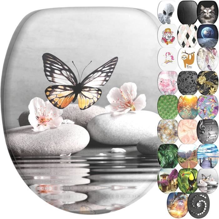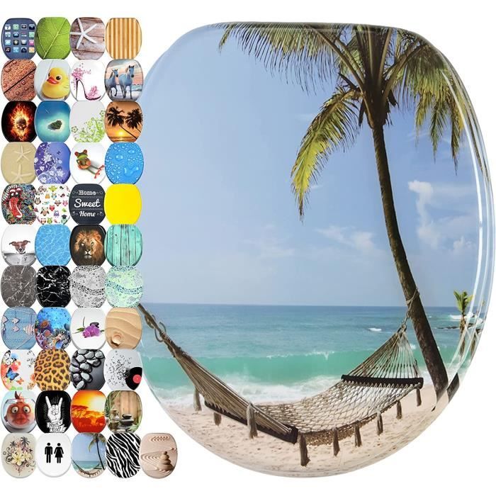Abattant WC frein de chute soft close Zébré Matière: - Bois (fabrication solide) Dimensions: - Dimensions extérieures: L / l = 47,0 / 37,7 cm - Dimensions intérieures: L / l = 26,7 / 23,0 cm - Équipé de charnières très solides (inoxydables), plage de réglage dans la largeur entre 11,0 et 20,5 cm - S'adapte à la majorité des cuvettes de WC, (suspendues ou posées) Caractéristiques: - Muni d'un frein de chute soft cloe - Finition de haute qualité - Revêtement antibactérien - Fixation facile grâce au matériel de montage inclus - Très confortable - Solides patins niveleurs sous la lunette - Supporte jusqu'à 200 kg Conseils d'entretien: - Entretien facile à l'aide de produits d'entretien ménager - Résistant Facile d’entretien ✓ La lunette de WC dispose d’une surface antibactérienne spéciale et peut être nettoyée sans problème avec tous types de produits ménagers. La surface de la lunette des toilettes est ainsi préservée et la longévité du produit est prolongée. Les abattants WC de Sanilo se caractérisent par : Frein de chute pratique L'abattant WC s'abaisse doucement grâce au frein de chute intégré. Finitions de haute... Universel Gr ce sa forme, l abattant de WC s adapte toutes les cuvettes de WC suspendues et au sol disponibles dans le commerce et peut tre facilement fix l aide du mat riel de montage fourni. Pratique Le syst me d'abaissement automatique int gr ferme l'abattant des toilettes en douceur et en silence. Grâce à sa finition spéciale et à son matériau de qualité, il offre une assise très confortable. Abattant Wc Avec Frein De Chute Déclipsable Cuvette Toilette Abattant WC Sanilo En Bois Avec Frein De Chute - Modèle Maritime - Universal Pour Cuvette Standard Sanitaire Salle Bain Abbatants Wc Avec Frein De Chute Declipsable Forme D Reducteur Toilette Enfant Sanilo Abattant WC Frein De Chute Universel ✓ Grâce à sa forme, l’abattant de WC s’adapte à toutes les cuvettes de WC suspendues et au sol disponibles dans le commerce et peut être facilement fixé à l’aide du matériel de montage fourni. Installation facile] Installation rapide et facile avec les matériaux de montage fournis, très robustes et stables, non secoués pendant de longues périodes