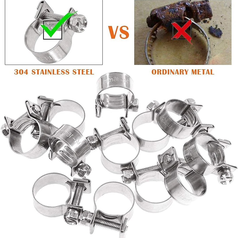 Pratique à installer ou à retirer en utilisant un tournevis à fente ou une clé hexagonale 4 types de colliers de serrage dans différents diamètres réglables (min-max) que vous pouvez choisir, 13-15mm, 14-16mm, 16-18mm, 18-20mm · Ces colliers de... Ajustement pour le tuyau mince de mur dans de petites tailles telles que le tuyau d'air, le tuyau d'eau, le tuyau de carburant, le tuyau de silicone, etc. Les surfaces sont bien polies et les bords sont également lisses, de sorte qu'ils ne vont pas rayer ou endommager les tuyaux 10 Pcs Mini Tuyau De Conduite De Carburant En Acier Inoxydable Lot De 10 Mini Colliers De Serrage Pour Tuyau De Carburant En Acier Inoxydable Taille En Option De 6 A 20 Mm 93908055 Caractéristiques: Matériel: 304 en acier inoxydable Couleur: Comme les images montrent Diamètre (min-max): 18-20mm Quantité: 10pcs Le forfait comprend: 10pcs x colliers de serrage Remarque: 1., S'il vous plaît permettre erreur 1-2mm en raison de la mesure manuelle. Merci pour votre compréhension., 2., Les moniteurs ne sont pas calibrés de la même manière, la couleur de l'article affichée sur les photos peut être légèrement différente de l'objet réel.