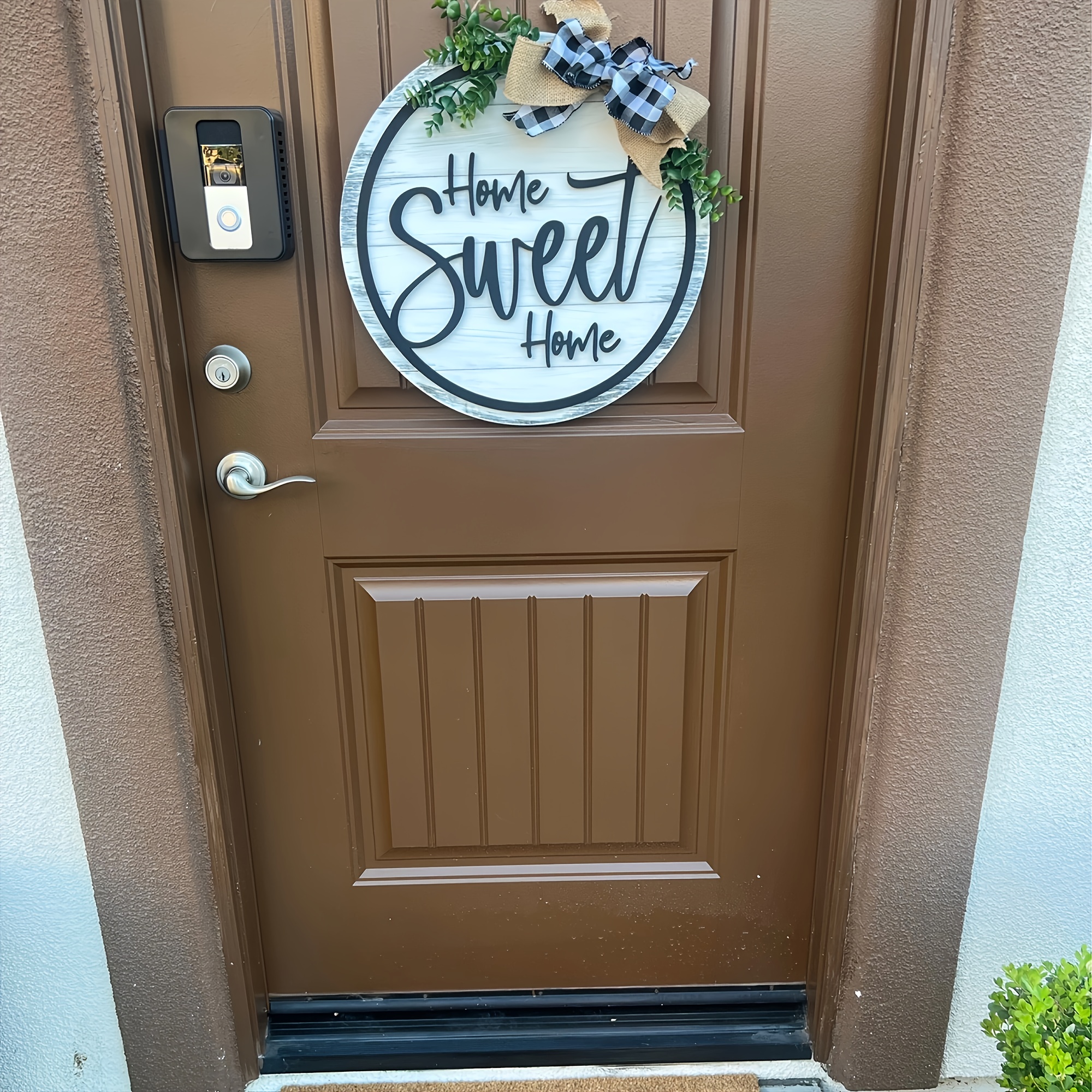 Décorez votre porche avec cette charmante couronne Home Sweet Home. Porte-manteau de porte de * 3D, décoration de porte d'entrée, porte à suspendre de porte de * décoration de * ornements de * couronne de * couronne de *'entrée, cadeaux à suspendre pour décoration de Couronne de bos floral fr Rustque Porte d'entrée | Etsy | Couronne de... Avec son design élégant, cette plaque promet un charme durable à votre espace. Améliorez la première impression de votre maison : soulevez votre entrée ; ce panneau ajoute une touche accueillante, charmant les visiteurs et crée un espace accueillant pour la famille et les amis. Dimensions du produit : environ 30 x 30 cm., Poids : 200 g., Matériau : bois. Les feuilles vertes et le nœud accentuent le demi-cercle supérieur, créant un ajout charmant à votre décoration de porte d'entrée. Accrochez-le sur n'importe quel mur, fenêtre ou clôture pour ajouter instantanément de la chaleur et du charme à de nombreux endroits, du porche au salon. Contenu : 1 panneau « Home Sweet Home » Pas facile à déformer : notre panneau Home Sweet Home est fabriqué à partir de bois robuste, habilement conçu avec une attention particulière aux détails pour un affichage robuste qui ne se casse pas et ne se décolore pas facilement. Ce panneau de porte en bois n'est pas limité par n'importe quelle saison et peut être utilisé au printemps, en été, en automne, en hiver pour toutes les saisons pour donner à votre porte d'entrée un look de ferme haut de gamme avec de nouvelles tendances Guirlande De Noël En Bois À Suspendre À La Mode - Décoration De Porte Nombreuses utilisations : apportez une touche de caractère à n'importe quel espace de vie avec ce panneau « Home Sweet Home ».