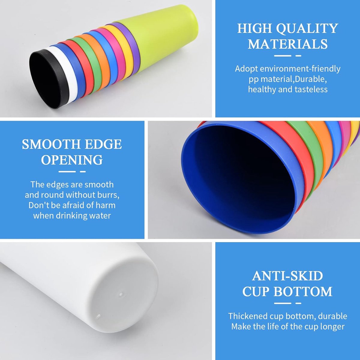 Caractéristique : - Fabriqués en plastique PP de haute qualité, robustes et durables, ils ne se cassent pas facilement et ne vieillissent pas. - Inclus 9 couleurs différentes (jaune, rouge, violet, vert, bleu, vert clair, orange, rose et bleu foncé), les couleurs vives peuvent être utilisées avec tous les schémas de couleurs et les décorations de table., Spécification : 【Multifonctionnel】Utilisé comme gobelet d'eau, gobelet de bain de bouche, gobelet de jus de fruits, gobelet de bière, tasse de café,gobelet de dentifrice, adapté aux fêtes, barbecues, anniversaires d'enfants, camping, maison, bureau, salle de classe, etc. Gobelet personnalisé Enfant Tortue Description du produit 9 Pièces Gobelets en Plastique Colorés, 260ml Gobelets en Plastique Réutilisables pour Les Fêtes, Camping, Plage, Pique-nique (9 couleurs) 【Haute qualité】 Fabriqué en plastique PP de haute qualité, non toxique et respectueux de l'environnement, robuste et durable, pas facile à casser et à vieillir et réutilisable. Livré chez vous au meilleur prix : 9 Pièces Gobelets En Plastique, Gobelets Plastiques Colorés, 260Ml Gobelet pour Enfants Colorés, 9 Couleurs, Gobelet En Plast 【Réutilisables】Les gobelets de fête sont faciles à nettoyer, ils peuvent être lavés à la main ou au lave-vaisselle et peuvent être empilés pour une prochaine utilisation. 【Taille】Le plastique réutilisables dur a une capacité de 260 ml, un diamètre d'ouverture de 6,7 cm, un diamètre de fond de 4,5 cm et une hauteur de 10 cm. Diamètre du fond : 4., 5cm Gobelets en Plastique Réutilisables – Écologiques & Personnalisés Verre Enfant Gobelet Plastique Couleur Gobelets Plastique Réutilisables - Lot De 9 Couleurs - 160ml - Empilables Pour Pique-nique, Fêtes, Camping Gobelet Plastique Enfant Lot De Tasse 6 Pcs Gobelets Plastique Réutilisables Colorés, 400L Couleurs Tasse... Couleur : Jaune, Rouge, Violet, Vert, Bleu, Vert Clair, Orange, Rose Et Bleu Foncé , Capacité : 260ml