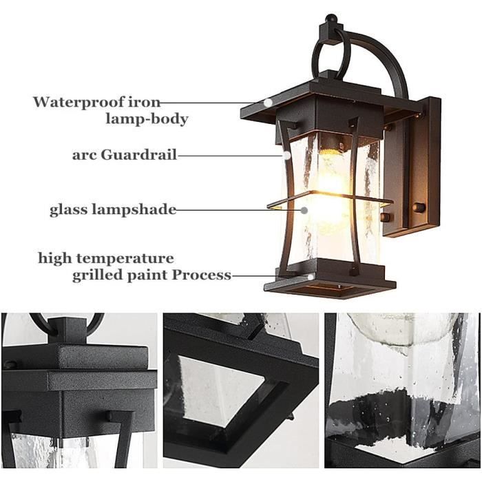 Informations produit Matériel: Aluminium Base: E27 Courant: AC Tension (V): AC 220-240V niveau étanche : IP65 Utilisations: jardins, balcons, villas, murs extérieurs, porches, bureaux, salles d’exposition, restaurants, bars, cafés, musées., Paquet: 1 * Applique. Applique Murale Led Rétro Extérieure E27 Industrielle Vintage Ip65 Etanche En Verre 8728510300506 Le produit n’inclut pas d’ampoules Applique Murale Extérieure Uook Industriel Vintage Extérieur E27 Applique Murale Aluminium Edison Verre Étanche IP65 Applique Murale Lampe Porche Noir Lumières Terrasse Balcon Applique Murale Extérieure étanches Étanchéité: Convient non seulement pour l'intérieur, mais aussi pour les murs extérieurs. UNI 2PCS Rétro Lampe Murale Industrielle Métal Applique Murale Noir... Les appliques d'extérieur E27 offrent une excellente résistance à la chaleur, aux chocs, aux basses températures et à toutes les autres conditions météorologiques difficiles. Robuste et construit pour durer. (Ampoule non incluse) 1 * Accessoires de montage