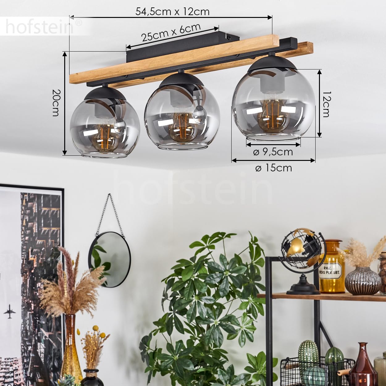 TypeType de luminaire: Spot de plafond DimensionsLargeur: 12 cmHauteur: 20 cmLongueur: 54., 5 cmDiamètre: 15 cmMatériaux et colorisMatériau du luminaire: Bois, Métal Matériau de l'abat-jour: Verre Couleur du luminaire: Écru Couleur de l'abat-jour: Fumé Style et caractéristiquesType d'utilisation: Intérieur Pièce: Bureau, Cuisine Style: Rétro, Scandinave Interrupteur On/Off: Non Forme: Globe, Allongé, Rond Ajustable: Non Détails techniques lampe & ampouleLED: non spécifié Nombre de lumière(s): 3 Culot: E27 Ampoule(s) fournie(s): Non Ampoule(s) remplaçable(s): Oui Puissance par lumière: 25 WattIntensité variable: Variateur externe (non inclus) Liseuse: Non Alimentation électrique: 230 Volt SécuritéIndice de Protection: IP20 Classe de protection: I Autres optionsChangement de couleur: Non Télécommande: Non Détecteur de mouvement: Non Prise incl. Non | Timer: Non | Haut-parleur Bluetooth: Non | Capteur jour/nuit: Non Suspension Podre Bois clair, Noir H3622711 MATÉRIEL/COULEUR : Le support de plafond est en métal noir mat. Les trois abat-jour sont en verre fumé de forme arrondie. APPLICATION: Ce plafonnier peut être... Sécurité -Indice de Protection: IP20 | Classe de protection: I | Autres options -Changement de couleur: Non | Télécommande: Non | Détecteur de mouvement: Non | Prise incl. Plafonnier E27 Lot De 3 Plafonnier Industriel Luminaire E27 Vintage Zaku Lustre Abat-jour En Métal Bois 160mm Plafonnier Noir Et Bois Non Timer: Non Haut-parleur Bluetooth: Non Capteur jour/nuit: Non Smart HomeCompatible Smarthome: Non spécifié Style et caractéristiques -Type d'utilisation: Intérieur | Pièce: Bureau, Cuisine | Style: Rétro, Scandinave | Interrupteur On/Off: Non | Forme: Globe, Allongé, Rond | Ajustable: Non | Détails techniques lampe & ampoule -LED: non spécifié | Nombre de lumière(s): 3 | Culot: E27 | Ampoule(s) fournie(s): Non | Ampoule(s) remplaçable(s): Oui | Puissance par lumière: 25 Watt | Intensité variable: Variateur externe (non inclus) | Liseuse: Non | Alimentation électrique: 230 Volt Dimensions -Largeur: 12 cm | Hauteur: 20 cm | Longueur: 54., 5 cm | Diamètre: 15 cm | Matériaux et coloris -Matériau du luminaire: Bois, Métal | Matériau de l'abat-jour: Verre | Couleur du luminaire: Écru | Couleur de l'abat-jour: Fumé hofstein Plafonnier Podre, plafonnier moderne en métal/bois/verre noir/naturel/fumée, luminaire au design rétro/vintage avec abat-jour en verre fumé ( 15...