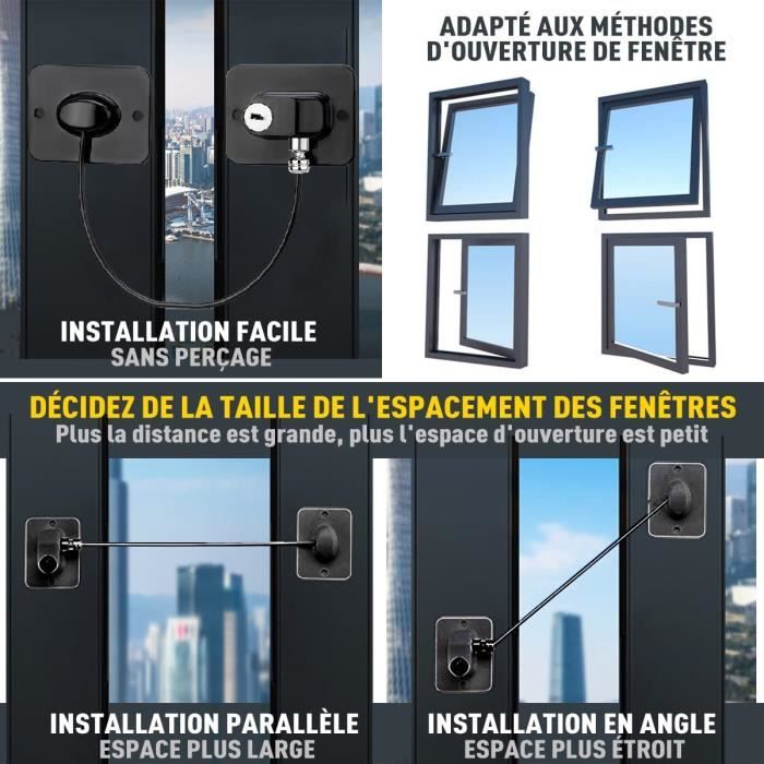 Nom du produit : entrebâilleur de porte de fenêtre. Garantit la sécurité des enfants : ce verrou de porte de fenêtre est conçu pour limiter la distance d'ouverture des fenêtres et des portes et réduire les chutes... Lot de 4 entrebâilleurs de fenêtre pour fenêtres en UPVC, verrous de sécurité avec câble à clé, serrure de porte, réfrigérateur, placard Lorsque le câble est en place, la distance d'ouverture de la fenêtre est limitée, et à l'aide d'une clé, le câble peut être retiré d'une extrémité et la fenêtre peut être complètement ouverte. Il est équipé d'une clé, facile à ouvrir et à fermer. Matériau du produit : UPVC et métal. Nous ferons de notre mieux pour vous montrer la couleur exacte. Il peut garder les enfants et les animaux domestiques en sécurité, adapté à la plupart des types de fenêtres et de petites portes. Liste des pièces : Style 01, 2 entrebâilleurs de sécurité pour fenêtre, 2 clés, 8 vis, ou style 02, 4 entrebâilleurs de sécurité pour fenêtre, 4 clés, 16 vis, ou style 03, 8 entrebâilleurs de sécurité pour fenêtre, 8 clés, 32 vis., Remarques : 1., Il peut y avoir de légères différences entre l'image et la couleur réelle du produit. Installation facile : il est très facile d'installer cet entrebâilleur de sécurité de fenêtre. Entrebailleur Fenêtre Extérieur Limiteur De Fenêtre De Sécurité Pour Enfants Pour Verrous De Fenêtre De Sécurité Pour Bébé, Verrous Entrebâilleur Fenêtre Zeafree Mat riaux de qualit serrures de fen tre pour fen tre est fabriqu en alliage de zinc de haute qualit pour une r sistance et une durabilit exceptionnelles. La surface blanche lisse r sistante l'abrasion assure une longue dur e de vie et maintient une fonction de verrouillage solide, fournissant ainsi une s curit fiable pour votre maison JCP Entrebâilleur De Fenêtre Pour La Sécurité Des Bébés Et Des Enfants, Entrebâilleur De Câble En