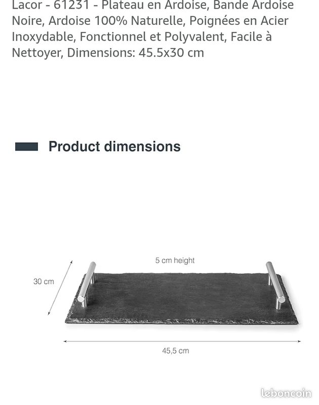 45 x 30 cm. Hauteur 0,7 cm. Matière ardoise. Couleur noir. EAN 4004133009967. 14,99 € 14,99 €. TVA de 19% incluse, plus frais de port. En stock. Expédiable dans... Plateau en ardoise rectangulaire. Poids : 1,80 kg Description : Les quatre élégants plateaux en ardoise naturelle véritable peuvent être utilisés comme assiettes de présentation ou sets de table et mettent ainsi en valeur une table de manière optimale. Assiette carrée ardoise 30x30cm Ardoise 45x30 Extérieur Plateau En Ardoise Naturelle - Ardoise 45 X 30 Cm - Noir Dessous De Table Les plateaux en ardoise conviennent soit comme soucoupe ou comme plateau de service et sont vraiment élégants. Contenu de la livraison : 1 plateau en ardoise de 45 x 30 cm sans décoration Dimensions (l x h x p) : 45 x 30 x 0,5 cm - Matériau : ardoise Afin que les assiettes de présentation ne glissent pas pendant le repas, chaque plateau est équipé de picots en caoutchouc antidérapants. Ou faites plaisir à vos proches avec un dîner romantique servant sur un set de table en pierre naturelle. 1950/70 Table Basse Fer Forgé Avec Entretoise Plateau Ardoise De... Matière : ardoise Couleur : noir.