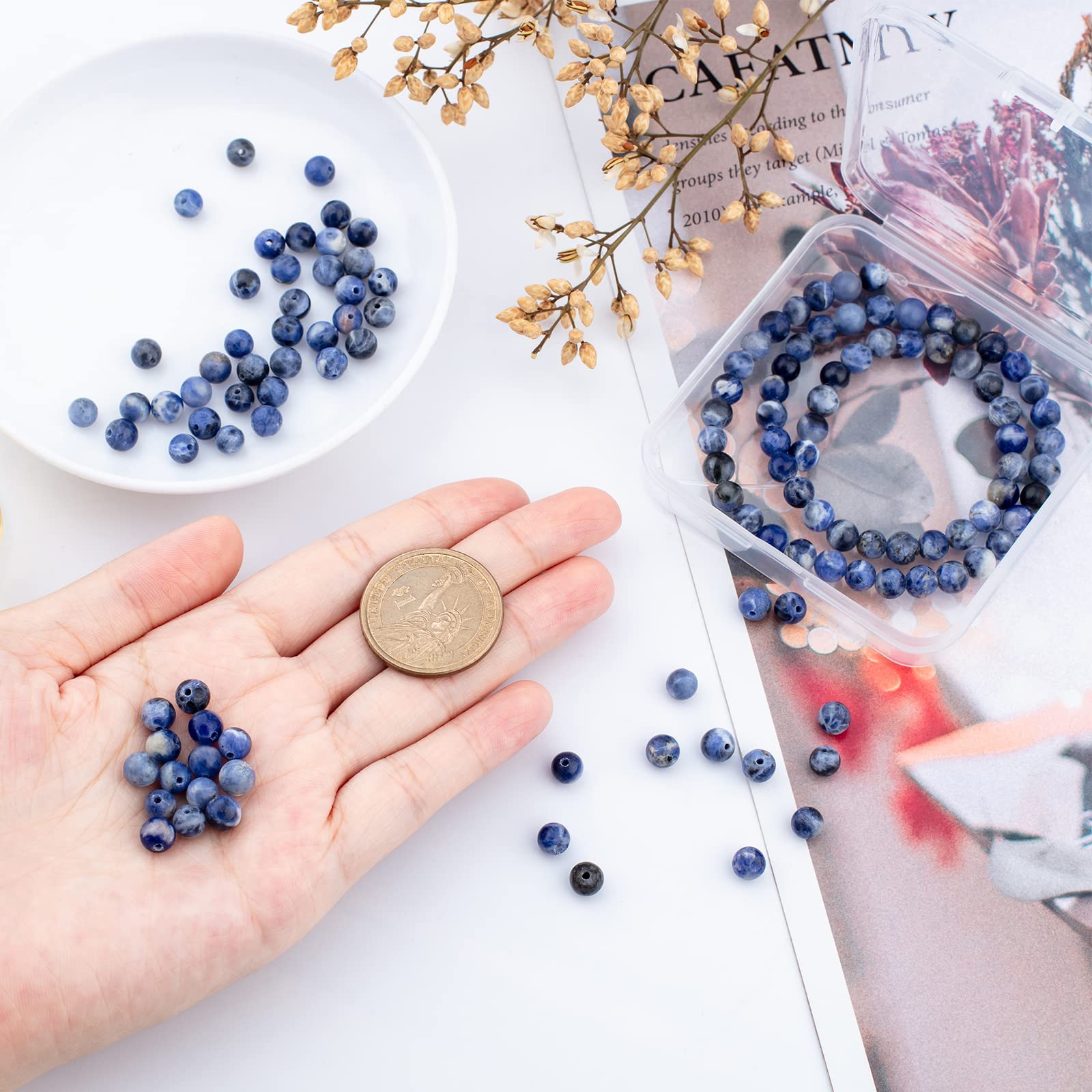 Remarque : veuillez vous assurer de la taille dont vous avez besoin avant d'acheter., ., Perles de Sodalite Bleues Blanches et Noires : Nos perles de pierres précieuses sont faites de pierres précieuses naturelles de sodalite bleues et blanches (certaines perles peuvent également avoir du noir dessus). Perles de sodalite de qualité AB : nos perles de sodalite sont des perles de pierres précieuses de haute qualité de qualité AB., ., Ils ont une surface hautement polie pour une surface lisse, aspect brillant, sont résistants à l'eau et ne se décolorent pas, faible frottement et hypoallergénique. Il soulage également l'irritabilité et le stress mental, rend les gens plus calmes et aide à améliorer la qualité de leur sommeil. Bracelet Sodalite claire 6mm La description: Caractéristiques: Matière : Sodalite; Forme: ronde; Couleur bleue, blanc et noir; Taille: Environ 6 mm de diamètre, Trou: 0., 8mm; Environ 60 pcs/chapelet, 15~16 pouce, 5 brins. Le grand nombre de perles de sodalite vous permet de les utiliser et de les remplacer pour votre bricolage quotidien. Achetez 5 brins 300pcs 6mm perles de sodalite bleu naturel brin grade AB pierres précieuses perles lisse ronde lâche pierre intercalaire perles pour bricolage collier bracelet Earrin. Des boucles d'oreilles, et bracelets. Nombreuses applications : ces perles de sodalite peuvent être utilisées pour fabriquer des bijoux tels que des colliers. 5 brins d'environ 300 perles de 6 mm : il contient 5 brins de perles., ., Chaque brin contient 60 pièces (300 pièces au total). Perles rondes en pierre naturelle mate de 6 mm en sodalite HOBBIESAY 5 Brins 300pcs 6mm Naturel Bleu Sodalite Perles Strand Grade Blue sodalite stone texture Banque de photographies et d’images à haute... Vous pouvez également sentir la fraîcheur attachée aux perles lorsque vous les portez.
