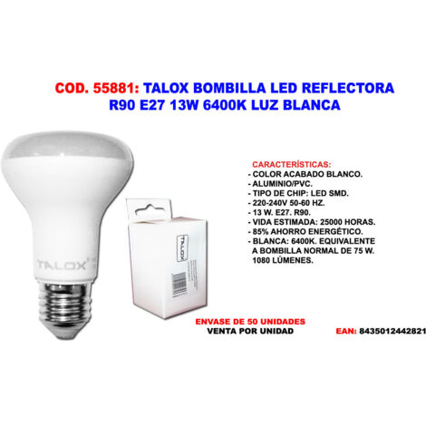 Lot De 6 Ampoules Led E27 13,5 W - Blanc Froid 6000 K - Réflecteur Bénéficiez d'une bonne concentration grâce à unéclairage optimal ! Créez une ambiance détendue avec une lumière chaude et blanche agréable ! Idéal pour votre salon, chambre à coucher et chambre d'enfant. Extrêmement économe en énergie : avec seulement 7 watts de consommation, vos réflecteurs LED émettent 630 lumens. Cela préserve l'environnement et votre portefeuille ! - Ensemble de 3 réflecteurs LED E27 - Classe d'efficacité énergétique : A... 3 ampoules LED à réflecteur R63 E27, par Luminea , Type de culot : E27 Pack 2 Ampoules Réflecteur LED E27 9W Equi.60W 806lm 25000H 7hSevenOn... Avec Reflet 3 Ampoules LED à Réflecteur E27 - 7 W - 630 Lm - Blanc Ampoule E27 Led Puissance nominale : 7 W Luminosité : 630 lumens Température de couleur : blanc lumière du jour (6400 K) Tension : 230 V Angle d'éclairage : 120° Temps d'allumage : 1 s Temps de démarrage avant d'atteindre 60 % du flux lumineux complet : 0,5 s Luminosité non réglable Facteur de puissance électrique de l'ampoule : 0,5 Durée de vie nominale théorique de l'ampoule : jusqu'à 30000 heures Nombre de cycles lumineux avant défaillance prématurée : jusqu'à 15000 Flux lumineux à la fin de la durée de vie nominale : 70 % Dimensions (Ø x H) : 63 x 104 mm, poids : 40 g Éclairage parfait pour de jolis accents lumineux