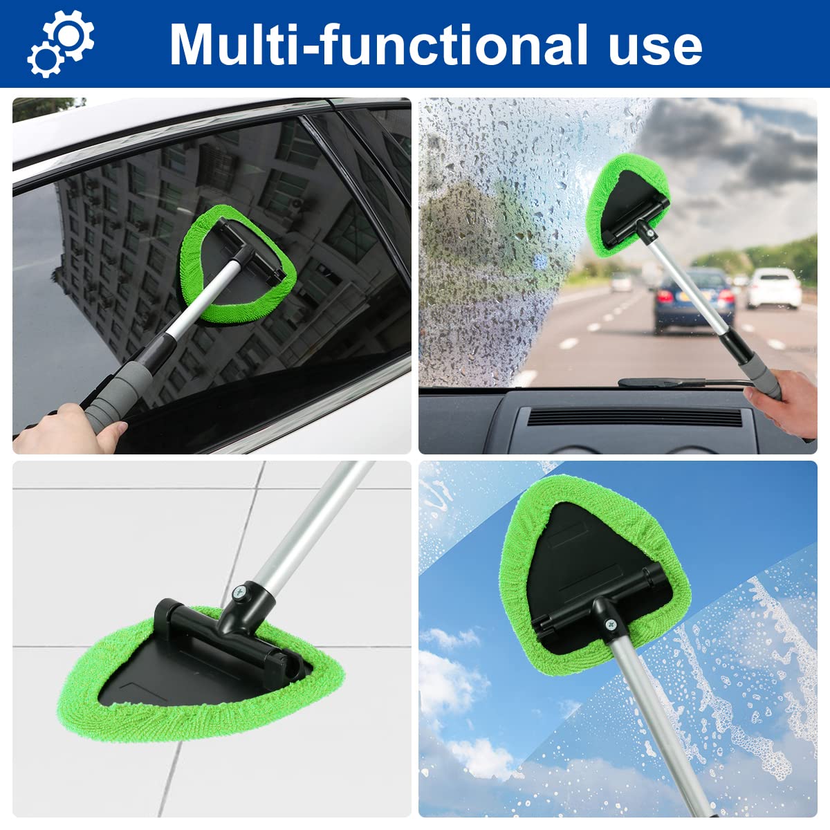 Poignée extensible : la poignée extensible contient non seulement une housse en éponge douce pour garantir votre confort lors du nettoyage de la fenêtre, mais la longueur réglable de la poignée facilite également le nettoyage de la vitre du véhicule. Large utilisation : outil de nettoyage de pare-brise idéal pour toutes les tailles de voitures, SUV, camions et ainsi de suite. Tête triangulaire pivotante à 180° : conçue avec une tête triangulaire pivotante pour établir un contact complet avec le verre, qui peut être tournée à 180 degrés pour s'adapter très bien à la surface du verre, facile à nettoyer le bas des fenêtres de voiture ou certaines zones difficiles d'accès, facile à utiliser et sans effort. La poignée de l'outil de nettoyage de pare-brise mesure 22,9 à 38,1 cm et l'ensemble du nettoyeur mesure 33 à 48,3 cm, ce qui est assez long pour vous permettre de nettoyer n'importe quelle position de la vitre de la voiture Brosse de nettoyage de vitres de voiture, nettoyeur de pare-brise automatique, microcarence avec 4 tampons lavables réutilisables, poignée extensible, extérieur... Kit Nettoyage Voiture Extensible Brosse De Nettoyage De Pare-brise De Voiture Extensible De 47 Cm Brosse Nettoyage Voiture Extensible Il suffit de tourner la poignée dans le sens des aiguilles d'une montre pour régler la longueur, et de serrer la poignée en la tournant dans le sens contraire des aiguilles d'une montre. KTZCTPCA Lot de 2 brosses de nettoyage pour pare-brise de voiture Et le nettoyant pour pare-brise peut être considéré comme un outil d'élimination de la buée ou de l'humidité. 4 housses amovibles et lavables en microfibre : un lot de nettoyants pour pare-brise comprend 4 paquets de coussinets lavables et réutilisables, 2 paquets peuvent être utilisés à l'humidité, les autres 2 peuvent être utilisés à sec, ce qui doit bien nettoyer votre véhicule et ne jamais causer de traces après le nettoyage. Vous pouvez également utiliser cette brosse de nettoyage pour nettoyer vos voitures, fenêtres, télévision, écrans en verre, miroirs en verre et même les sols.
