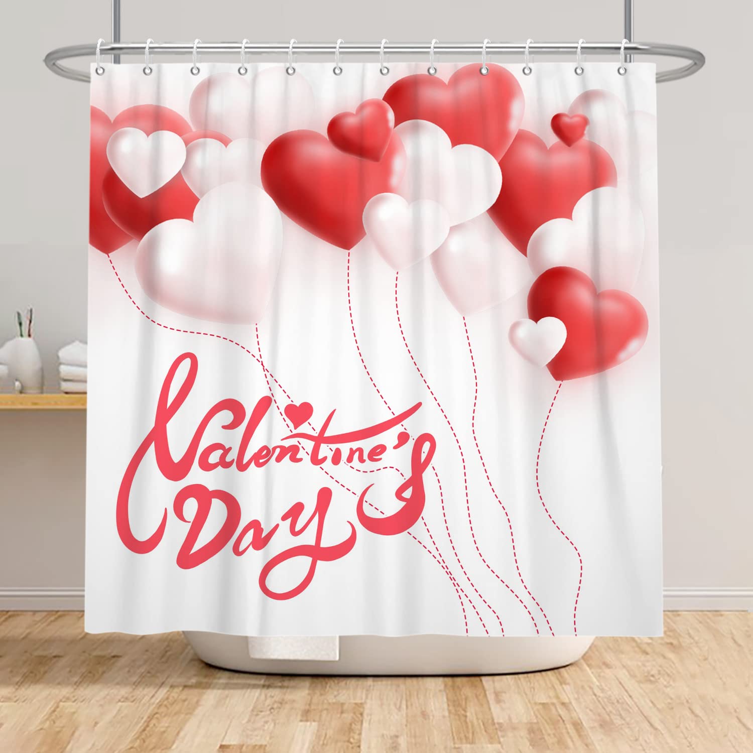 Taille : le rideau de douche de Saint-Valentin mesure 180 x 180 cm, s'adapte à la plupart des cabines de douche et baignoires de taille standard, et convient aux tringles de douche droites ou incurvées. Matériau : le rideau de douche de Saint-Valentin pour salle de bain est fabriqué en tissu polyester, non toxique, inodore et imperméable, durable pour durer des années. Le joli rideau de bain nain est également un excellent cadeau de Saint-Valentin pour votre amoureuse (cadeau pour votre petite amie, épouse) 12 crochets de rideaux en plastique, faciles à installer et à glisser. Caractéristiques : Nom : rideau de douche pour la Saint-Valentin, rideau de douche en forme de cœur rose, gnomes de Saint-Valentin, accessoires de salle de bain, rideau de bain Saint-Valentin, cadeaux pour amoureux, cadeaux pour femmes, décoration de salle de bain, rideaux de douche cœurs rouges Matériaux : polyester et plastique., Couleur : multicolore., Dimensions : 180 x 180 cm. Vous pouvez utiliser cet ensemble de rideaux de douche uniques en forme de cœur/amour pour décorer votre salle de bain, mur, fenêtre et tout espace où vous le souhaitez. Rideau de douche 180 x 200 cm, décoration de salle de bain avec... Large application : le rideau de douche pour la Saint-Valentin peut être utilisé pour les douches et les baignoires dans votre maison, camping-car, hôtels, motels, douches de dortoir, décoration de salle de bain, accessoires de salle de bain, décoration de salle de bain pour la maison et plus encore. Design romantique : le rideau de douche de Saint-Valentin est conçu avec une forte atmosphère festive (livré avec une rose rouge, une forme de cœur rouge, un joli couple de nains, des ballons rouges, etc., ). Facile à installer : 12 crochets de rideau en plastique, faciles à installer et à glisser. Facile à installer : lavable en machine à l'eau froide, ou séchage à basse température, facile à nettoyer. Bullpiano Ensemble de rideaux de douche 4 pièces avec tapis Rideau De Douche En Tissu PEVA, Décoration De Salle De Bain D'hôtel Infroissable, résistant à la décoloration et au rétrécissement.