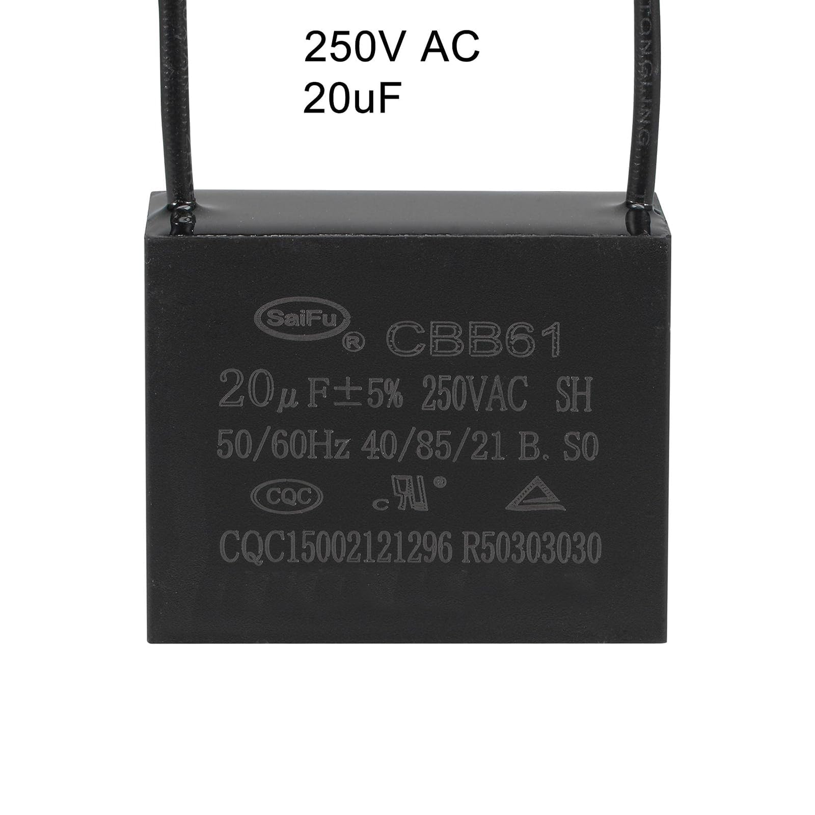 ③Tension nominale : 450 V CA ; ④ Dimensions totales : 38 x 20 x 30 mm ; ⑤ Fréquence nominale : 50/60 Hz., ⑥Classe climatique : 40/70/21., ➤ Diélectrique : film en polypropylène métallisé auto-cicatrisant Matériau du boîtier : ABS, PBT, plastiques non réformés. sourcing map Condensateur de ventilateur de plafond CBB61 Matériau : Plastique métallique ; ; Tension : 250 V C.A., 370 V C.A., 440 V C.A., 450 V C.A. 50 / 60 HZ ; Temp. Max. : 70 °C. ; Taille : 38X27X16MM ; Normes de... Condensateur Stihl Cbb61 Condensateur Ventilateur Plafond CBB61 2uF 450V AC 2 Fils Métallisé Condensateur Cbb61 Prix [Performance stable Dissipation rapide de la chaleur] : bonne stabilité des performances, résistance aux chocs, résistance aux hautes températures, longue durée de vie. 1UF 450v Schéma de câblage du ventilateur de plafond condensateur Cbb61... [Spécification] : capacité nominale : 3 uF ; tolérance : ± 5 % ; tension nominale : 450 V CA ; taille de la couverture : 38 x 20 x 30 mm ; fréquence nominale : 50/60 Hz ; plage de température : 40/70/21 Spécifications complètes, film organique supérieur, petite taille, pas de polarité, installation facile [Grande variété et choix] : fabriqué à partir d'un film polypropylène métallisé avec une coque extérieure en plastique. MACHSWON CBB61 Condensateur de ventilateur de plafond 3 uF 450 V CA 40/70/21 ±5 % 50/60 Hz Cylindre 38 x 20 x 30 mm avec double usage condensateurs