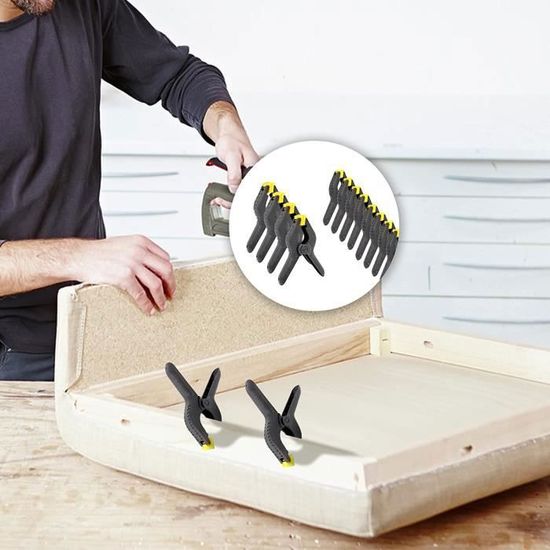 Caractéristiques : Les colliers de serrage DUPDMKIN sont spécialement conçus pour être compatibles avec n'importe quelle longueur de tuyau noir de 1,9 cm. KARRYTON Lot De 4 Colliers De Serrage F De 300 X 80 Mm Avec Profondeur Pince à Barre de Serrage pour le Travail du Bois - ZJCHAO - Déclencheur... Ajustez la poignée ergonomique pour renforcer la force de serrage pour le collage et le perçage. Stable et fonctionnel : le pied en forme de L assure la stabilité, empêchant le basculement. Fabriqués en fonte de fer solide, ces colliers de serrage offrent une performance durable pour vos besoins de travail du bois. Les colliers de serrage DUPDMKIN pour le travail du bois sont conçus pour un assemblage sans tracas, ces pinces permettent une installation rapide, ce qui permet d'économiser du temps et des efforts précieux dans votre atelier. Nombreuses utilisations : idéal pour les bancs de travail du bois à la maison ou dans le magasin, ces colliers de serrage à bois maintiennent le bois stable lors de divers projets. Le collier de serrage DUPDMKIN est adapté à une large gamme de projets de menuiserie, de l'industrie au bricolage, ces colliers de serrage garantissent stabilité et fonctionnalité. Facile à utiliser : faites glisser le collier de serrage à travers n'importe quelle longueur d'un tuyau de 1,9 cm, fixez le bois en place, et évitez de glisser avec le ressort hélicoïdal. Parfait pour les bancs de travail du bois à la maison ou dans le magasin, ces colliers de serrage à bois maintiennent le bois stable pendant divers projets. Fabriqués en fonte de fer solide et durable, ces colliers de serrage offrent une performance durable pour vos besoins de travail du bois Colliers De Serrage Pour Le Travail Du Bois – Pinces à Utilisez-les avec des tuyaux de 1,9 cm pour créer des pinces de n'importe quelle longueur.