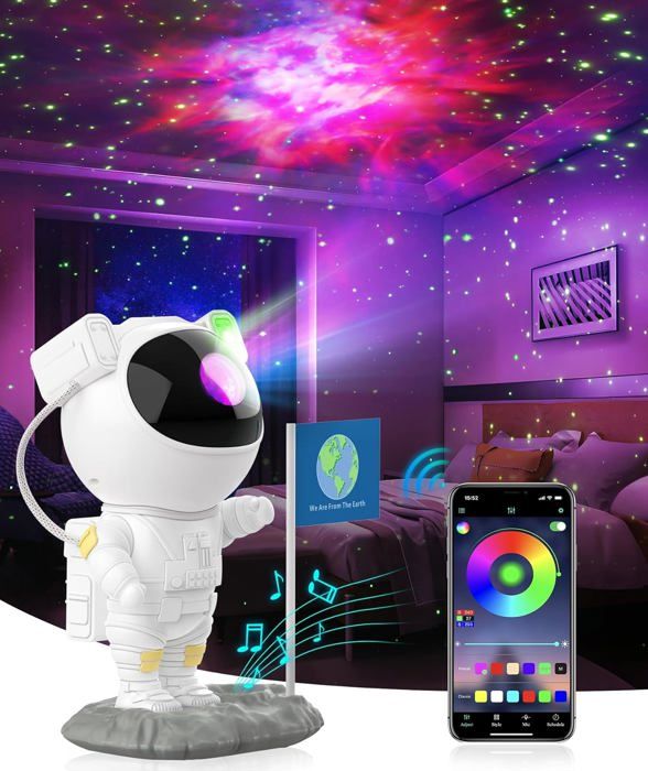 Cette atmosphère captivante est l'éclairage parfait pour les soirées cinéma, les soirées de rendez-vous ou les configurations de jeux. Fonction télécommande et minuterie : le projecteur ciel étoilé peut être facilement réglé via les boutons latéraux et la télécommande pour ajuster le motif de brouillard, la luminosité et la vitesse de rotation. Expérience de ciel étoilé parfaite : que ce soit comme veilleuse dans la chambre d'enfant, comme lumière ambiante dans le home cinéma ou comme lumière décorative dans la salle de jeux, ce projecteur Galaxy ciel étoilé peut vous apporter une expérience réaliste de ciel étoilé et rendre chaque nuit pleine de rêves et de romantisme. Projecteur Led Ciel Étoilé Galaxy, Projecteur Astronaute, Veilleuse 8 effets de projection différents de ciel étoilé : découvrez le projecteur LED astronaute ciel étoilé qui vous offre 8 effets de brouillard magnifiques et romantiques, chacun accompagné d'étoiles vertes scintillantes. En outre, l'effet sonore ambiant offre un soutien pour la détente et l'endormissement plus rapide, assurant une expérience de sommeil parfaite. Haut-parleur intégré et son surround ambiant : notre projecteur de ciel étoilé LED avec musique est équipé d'un haut-parleur intégré qui vous permet de connecter facilement votre téléphone portable et de lire de la musique. Vous pouvez facilement contrôler l'ordre de lecture de musique et le volume via votre téléphone portable ou la télécommande La forme de voiture amovible et mobile n'est pas seulement un projecteur de ciel étoilé, mais aussi un ornement décoratif innovant et mignon. Que ce soit pour raconter des histoires avec des enfants ou pour soutenir le sommeil, c'est le choix idéal pour une expérience d'écoute immersive. Vous pouvez facilement contrôler l'ordre de lecture de musique et le volume via votre téléphone portable ou la télécommande. C'est un cadeau idéal pour Noël, la Saint-Valentin, les anniversaires et autres occasions spéciales et vous offre une merveilleuse nuit de détente sous les étoiles. Astronaute Projecteur Ciel Etoile,Galaxy Projecteur Ciel Étoilé... Projecteur Led Ciel étoilé VUENICEE Astronaute Projecteur Galaxie, Projecteur Ciel Etoile Avec Nébuleuse Et Étoile/Minuterie/Télécommande/Bluetooth/Haut-parleur De Musique, Veilleuse Enfant Meilleur Cadeau Pour Les Enfants Veilleuse Bebe La télécommande offre également un réglage de la minuterie de 45 ou 90 minutes, ce qui vous permet de vous endormir sous un magnifique ciel étoilé, tandis que la veilleuse LED s'éteint automatiquement après l'expiration du temps réglé, économisant ainsi de l'énergie.