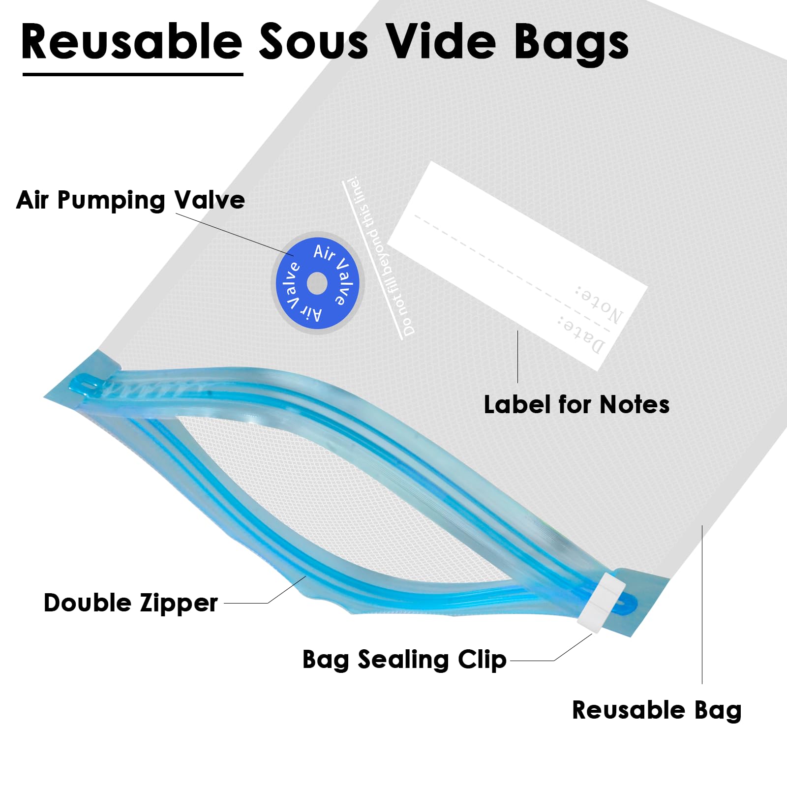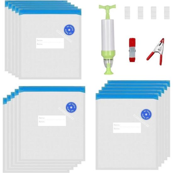Vous pouvez également inscrire la date et la classification des aliments sur l'étiquette située sur la surface du sac afin de les retrouver facilement. En outre, ce sac sous vide est respectueux de l'environnement et peut être recyclé. 【Solution peu encombrante】La pompe à vide manuelle est facile à utiliser, il suffit d'aligner la pompe à droite sur la valve d'air pour pomper de l'air. 【Multi-usages】Les sacs de mise sous vide peuvent être utilisés comme sacs de cuisson sous vide, sacs de conservation des aliments réutilisables, sacs à sandwich, sacs de conservation des aliments au congélateur, accessoires d'organisation dans la cuisine, à la maison, dans le garde-manger, sur le lieu de travail ou en voyage. Caractéristiques : Notre sac sous vide alimentaire est un produit de haute qualité conçu pour l'emballage des aliments. 【Excellentes performances de conservation des aliments】Le sac sous vide alimentaire est fabriqué en PE+PA de qualité alimentaire avec d'excellentes performances d'étanchéité à l'air, ce qui permet d'isoler l'air et d'empêcher les aliments de s'oxyder, de se corrompre et de se détériorer, ce qui permet de prolonger efficacement la période de fraîcheur des aliments. SAC ALIMENTAIRE,Green--Sacs de scellage sous vide réutilisables, qualité alimentaire... Après avoir utilisé ces sacs, nettoyez-les et séchez-les pour la prochaine utilisation. 【Bonne résistance à la température】Ces sacs de sous-vide réutilisables sont spécialement traités avec une bonne résistance à la température, qui peut être utilisé pour le réfrigérateur -20℃, et adapté à l'utilisation avec n'importe quel cuiseur sous-vide ainsi que le conteneur sous-vide. 【Répondez à toutes vos demandes】Les accessoires complets comprennent 3 tailles de sacs sous vide (5* petits : 26*28cm, 5* moyens : 26*34cm, 5* grands : 30*34cm), 4 clips d'étanchéité, 2 clips métalliques, 1 pompe à vide manuelle filtrable. L'emballage sous vide permet de gagner un espace précieux dans votre réfrigérateur, éliminant ainsi le désordre et la désorganisation. Tectake 20 sacs sous vide - tailles différentes | acheter en ligne Vacuum Sealer Sacs Sous Vide, 3 Tailles Sacs Sous Vide Alimentaires Réutilisables Avec 4 Clips Scellage, 2 Clips Pompe Sous Vide Alimentaire Il suffit de le laver à l'eau, ce qui est très pratique., Utilisation : 1., Placez les aliments, la capacité des aliments ne doit pas dépasser la ligne de pointe du sac ; 2., Utiliser le clip de fermeture pour verrouiller le double zip latéral ; 3., Aplatir le sac et s'assurer que l'orifice d'aération n'est pas obstrué par des aliments ; 4., Aligner la pompe sur la valve d'air pour pomper l'air.