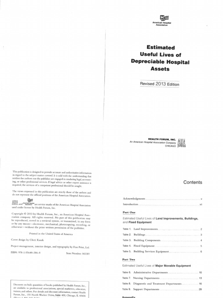 A Quick Guide to Understanding Assets & Depreciation Estimated Useful Lives of Depreciable Hospital Assets, 2018 Edition Broché – 31 juillet 2018 Aha Depreciable Hospital Assets 2018 Estimated Useful Lives Of Depreciable Hospital Assets, 2018 Hospital Asset Depreciation Guide