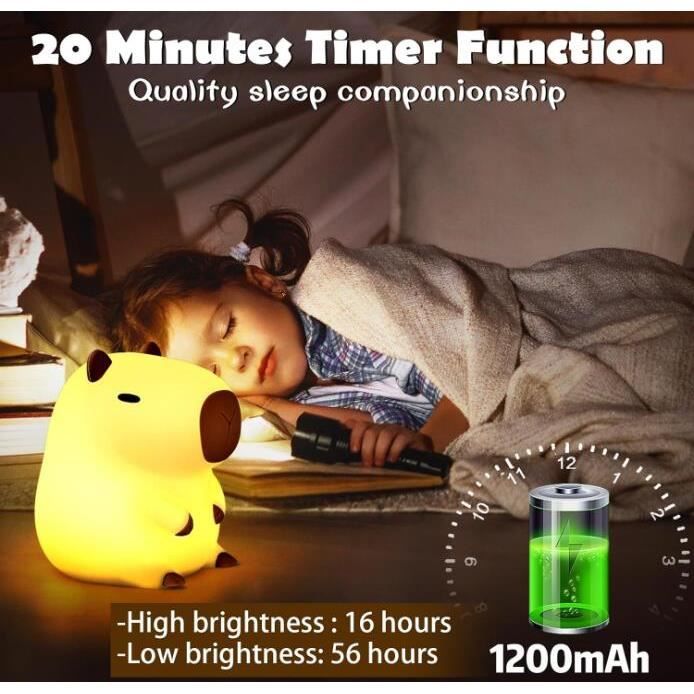 ICARER FAMILY Capybara Veilleuse pour enfant, 3 niveaux de luminosité, arrêt automatique, rechargeable, robinet en silicone souple, lumière de chambre d'enfant pour filles et garçons Veilleuse pour enfant : 6 modèles pour accompagner vos petits Panneau néon Capybara avec lunettes, panneau mural LED, panneau néon de... Veilleuse Kawaii Veilleuse Rechargeable En Silicone Capybara - Lampe LED à Intensité Variable Avec Minuterie 30 Min Pour Chambre D'Enfant | Leroy Merlin Lampe Capybara Description: ICARER FAMILY Capybara Veilleuse pour enfant, 3 niveaux de luminosité, arrêt automatique, rechargeable, robinet en silicone souple, lumière de...