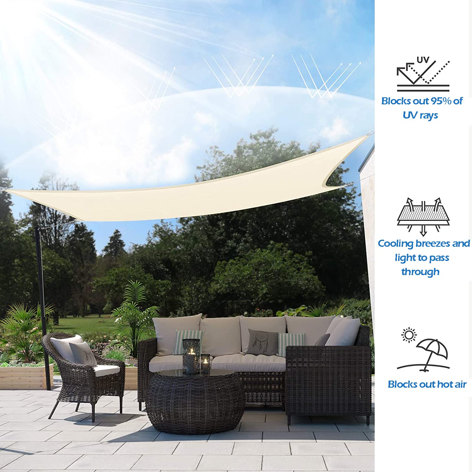 La maille respirante bloque jusqu'à 50~95% des rayons UV, ce qui abaisse considérablement la température et crée un espace extérieur confortable et frais. MAANTA: Toile D'Ombrage Radiale Ajourée Premium Rectangulaire 4X8m Hdpe 320g Couleur Gris Graphite 86815396 Son poids léger et sa durabilité en font un choix supérieur pour tous les types d'applications d'ombrage. Toile D'ombrage Pour Filets Filet D'Ombrage Parfait,Toile D'ombrage De Jardin,90% Résistant Aux UV Fabrique Filet D'ombrage Les 4 coins du filet d'ombrage ont des coins de protection triangulaires. Anti-UV]Bloque la lumière directe du soleil, avec un effet d'ombrage jusqu'à 75%, utilisé pour couvrir les serres, les plantes, les fleurs, la végétation et... Shade Tissu Cloth peut être utilisé pour protéger votre patio, pelouse, jardin, serre, piscine, ombrage de parking, chenils de chien et auvents, Backyard Dog Runs, ombrage de site de camping et rideau de trappe arrière;également Ce filet de tissu solaire d'ombre peut créer de l'ombre partout où vous avez besoin, y compris la couverture des plantes, bâche d'ombre, couverture de camion, enceinte, barrière de site, clôture de confidentialité, couverture de chenil, concombres, fraises, pastèques, laitue et haricots polonais et autre lieu de vie extérieur. Le filet d'ombrage est fabriqué avec du polyéthylène haute densité. Il reluque les rayons UV nocifs du soleil et diminue la termperature de manière significative par rapport aux tissus d'ombrage ordinaires.