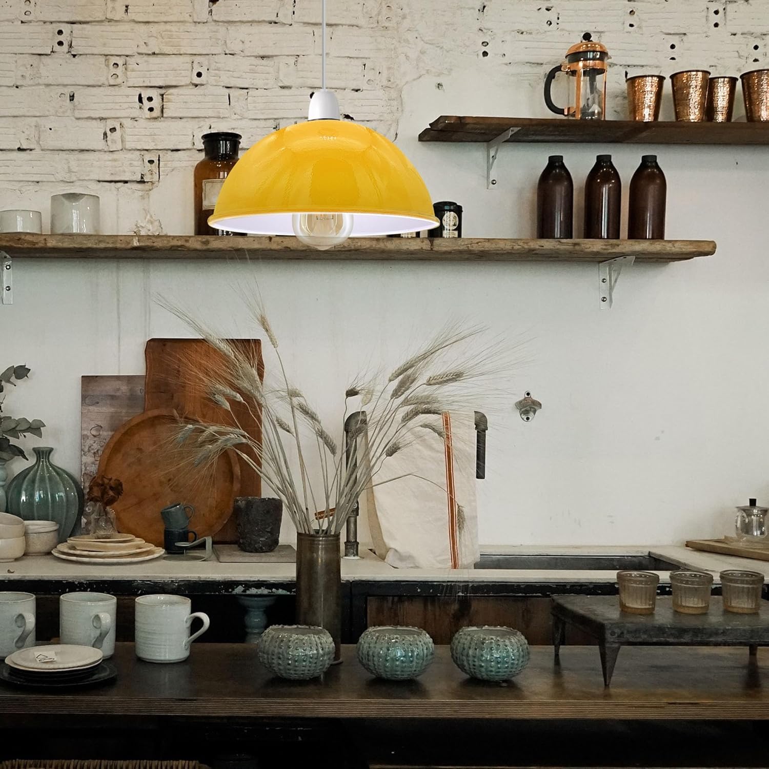 𝐌𝐚𝐭𝐞𝐫𝐢𝐚𝐥 : Fabriqué en métal, a une peinture anti-corrosion, un corps de lampe de peinture à haute température, une texture douce, ne se décolore pas facilement 𝐑𝐞𝐝𝐮𝐜𝐞𝐫 𝐩𝐥𝐚𝐭𝐞 : Il est livré avec une plaque réductrice, ce qui lui permet d'être compatible avec des supports de lampe plus petits, ce qui le rend pratique 𝐕𝐞𝐫𝐬𝐚𝐭𝐢𝐥𝐞 𝐔𝐬𝐞 : Convient pour une utilisation dans une variété d'espaces intérieurs, y compris les chambres, les salons, les cuisines Ampoules non incluses. Tension : 120-240 V. Peut être utilisé avec un variateur. DIMENSIONS ET HAUTEUR RÉGLABLE : Hauteur 20 cm x Diamètre 30 cm. Le diamètre du... Design : l'abat-jour en forme de dôme facile à installer illuminera votre monde sans délai. Il suffit de le fixer à votre kit d'éclairage suspendu existant... Abat Jour Métallique Industriel Suspension Luminaire Cuisine 30cm E27 Suspension Industrielle Rétro Lustre Abat-Jour Noir Lampe De Plafond Luminaire Pour Salon Cuisine Bar - Maison Suspension Cuisine Lustre Abat Jour Industriel LEDSONE Abat-jour industriel semi-incurvé en métal bleu cyan, 32