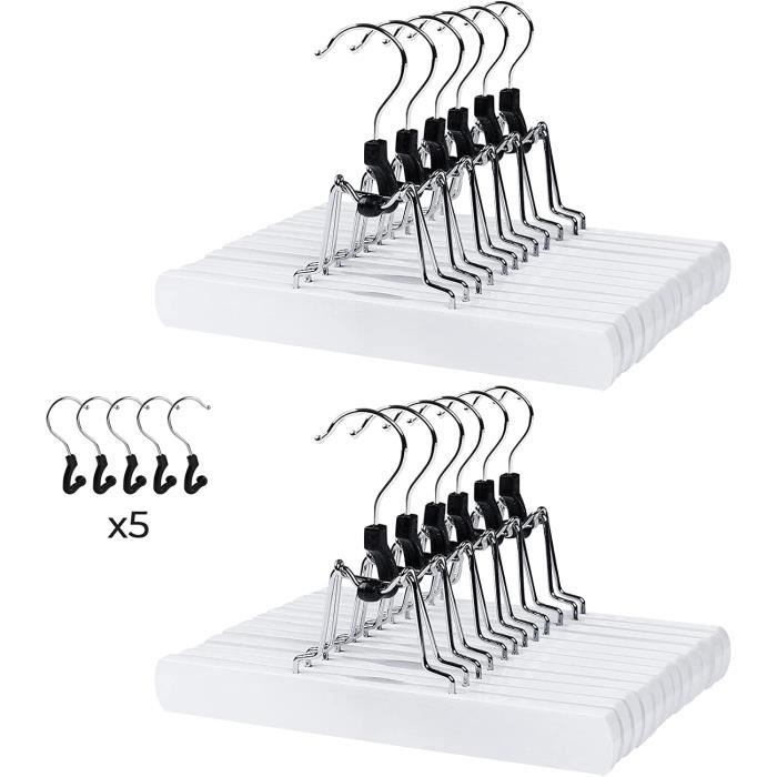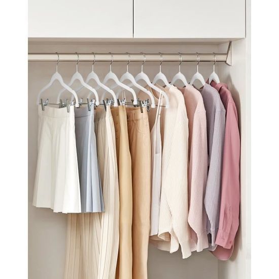 Le cintre en velours ultra-fin fin est fabriqué en velours plastifié et crochet métallique, léger mais très résistant, il est idéal pour tout type de vêtement, en particulier pour les vêtements aux tissus fins et faciles à démêler, avec un design simple et très fonctionnel. En outre, ils ont de petites entrées pour accueillir des chemisiers à bretelles. - Spécialement conçus pour les vêtements les plus délicats - Cintres avec tiges en acier chromé - Design ultra fin, maximise l'espace dans l'armoire - Entièrement texturé en velours beige - Courbes délicates qui préservent la forme des vêtements - La texture veloutée empêche les vêtements de glisser - Cintres avec tiges en acier chromé - Matériau : plastique recouvert de velours floqué et crochet en métal chromé - Dimensions : longueur 43 cm., Hauteur : 18 cm. Lot De 10 Cintres Velours Noirs 42,5 Cm Pour Pantalons Manteaux Robes Pinces Reglables Antiglisse Gain De Place Organiseur Pratique 96587414 Cintres pour Pantalon, Cintre Pince, Cintres Porte-Pantalons Métal... Cintre Velours En Ligne Cintre Métal Gainé Avec Barre Et Pinces (SF100BP) – PMP Cintres Cintres Pinces Les clips métalliques augmentent la polyvalence, en particulier pour accrocher des pantalons, shorts, jupes, etc. Les clips peuvent être ajustés le long de la barre horizontale pour des pantalons plus larges. Cintres peu encombrants : le cintre est très fin, parfait pour l'espace limité de l'armoire et idéal pour combiner plus d'un vêtement sur un cintre et économiser de l'espace dans l'armoire. Les cintres en velours peuvent accrocher des pantalons, des robes, des vêtements d'entraînement ou tout autre vêtement de votre choix. Pinces réglables : le crochet pivote à 360 degrés.