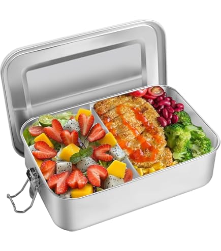 Schramm Boîte à sandwich en acier inoxydable 304 avec fermeture à cliquet pratique – Grâce au joint en silicone, la boîte à déjeuner est étanche – Excellente alternative aux boîtes à déjeuner en plastique – Incassable, adaptée à un usage alimentaire et neutre au goût – Polyvalente et facile à nettoyer – Compagnon idéal que ce soit à la maison, à la salle de sport, en voyage, au sport, à la plage, en voiture ou au travail – 5 tailles différentes au choix – environ : 800 ml, 17 x 12 x 6 cm, 300 g - environ : 1200 ml, 19 x 14 x 6,5 cm, 390 g - environ : 1400 ml, 21,5 x 16 x 6,5 cm, 445 g - environ : 1700 ml, 22 x 16 x 7,5 cm, 505 g - environ : 2200 ml, 24 x 18 x 7,5 cm, 575 g - Vous recevrez une boîte à déjeuner dans la taille de votre choix Schramm Boîte à sandwich en acier inoxydable 304 avec fermeture à cliquet pratique Grâce au joint en silicone, la boîte à déjeuner est étanche Boite compartimentée Durham, 16 Compartiments, Acier, 50mm x 339mm x 234mm | RS boîte à lunch Schramm en acier inoxydable avec fermeture pratique à l'alcool; grâce au joint en silicone, la boîte à lunch ne fuit pas... Schramm® Brotdose Aus Edelstahl Wählbar 800, 1200, 1400, 1700 Oder 2200ml Lunchbox Mit Fächern Inkl. 2 Stück Trennwänden Metalldose Mit Schnapverschluss, Größe Excellente alternative aux boîtes à déjeuner en plastique