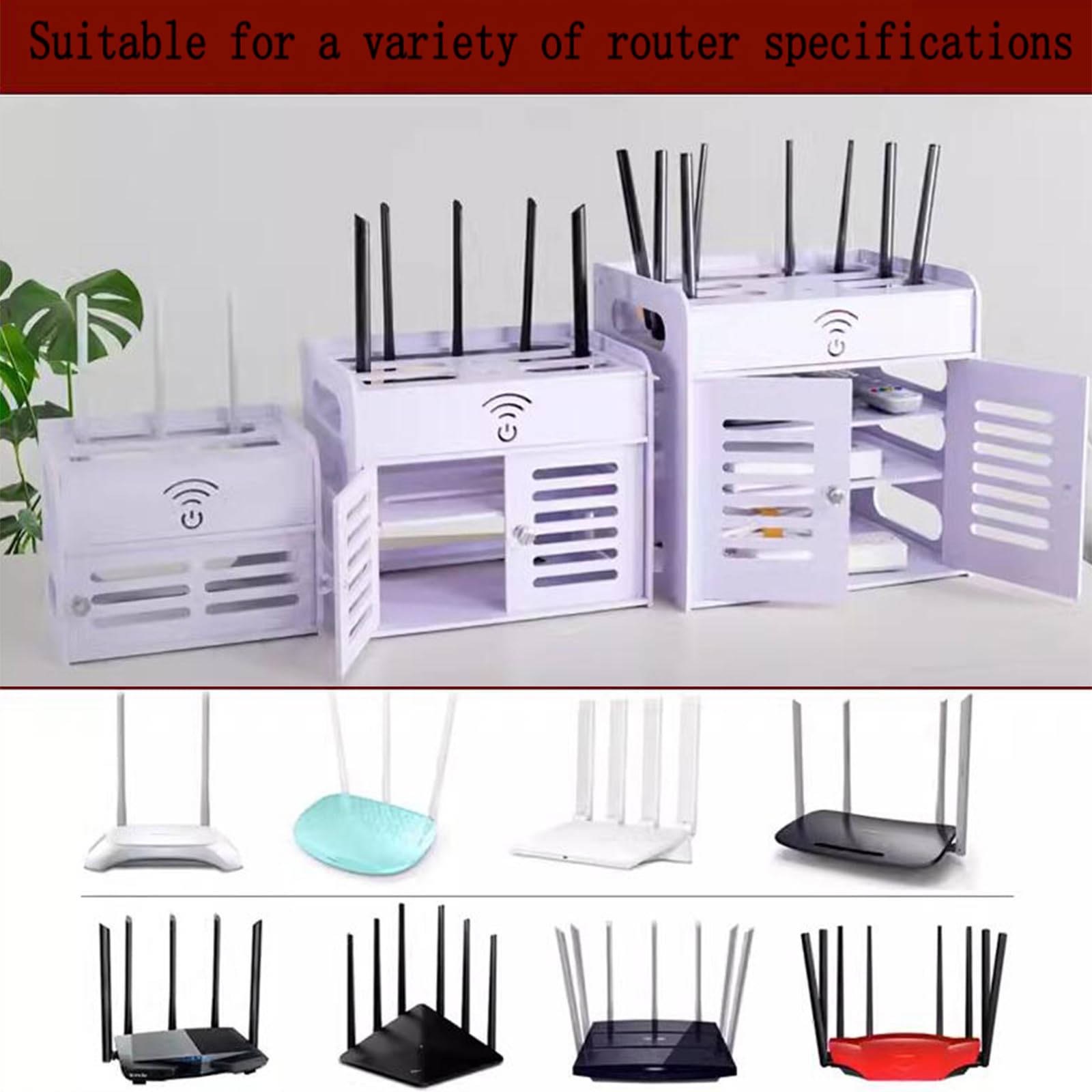 【RACK DE STOCKAGE MULTICOUCHE】: La boîte de rangement multifonctionnelle du routeur est conçue avec une structure supérieure et inférieure, et la conception assemblée est pratique pour prendre le routeur / carte enfichable pendant l'utilisation, ce qui est plus pratique à utiliser. Capacité portante élevée., 2., Ne bloquera pas votre signal WiFi. Matériau. Panneau de bois-plastique en PVC durci ; Caractéristique spéciale. Portable ; Dimensions du produit. 25,5P x 24,5l x 25,5H centimètres ; Type d'étagère Excellentes performances de dissipation thermique, maintenez l'appareil en fonctionnement normal., 3., La conception poreuse supérieure convient à différents types de routeurs., 4., Il y a des trous réservés pour le câblage intégré, ce qui est pratique pour le câblage., 5., Avec des partitions multicouches, il est pratique pour le stockage en couches. 【Caractéristiques】 Matériel : panneau de bois-plastique en PVC durci (couvercle, compartiment)/p Boîte de rangement pour câble de routeur WiFi pour ranger votre routeur, vos fils, vos câbles, vos adaptateurs, votre support pour ordinateur portable, vos décodeurs TV, votre télécommande, etc. rangement box internet : solutions optimales pour le réseau Boîtes de gestion des câbles 【MATÉRIAU ÉCOLOGIQUE】: Fabriquée à partir de panneaux de bois et de plastique en PVC durci, cette étagère de rangement pour routeur est très durable, à haute capacité portante, imperméable et non toxique / inodore. Boîte cachée du routeur mural Cache Box Internet Boîtes De Rangement Pour Routeur WiFi - Boîte De Rangement Murale Pour Boite Rangement Box Internet RACK DE STOCKAGE MULTICOUCHE]: La boîte de rangement multifonctionnelle du routeur est conçue avec une structure supérieure et inférieure, et la conception assemblée est pratique pour prendre le routeur / carte enfichable pendant l'utilisation, ce qui est plus pratique à utiliser. Boîte de Rangement pour Routeur WiFi, Boîte de Stockage de... Boîte de stockage de bureau de routeur. La porte est conçue avec un buand creux et une cloison, et les côtés sont évidés, il n'y a donc pas besoin de s'inquiéter de la dissipation de la chaleur.