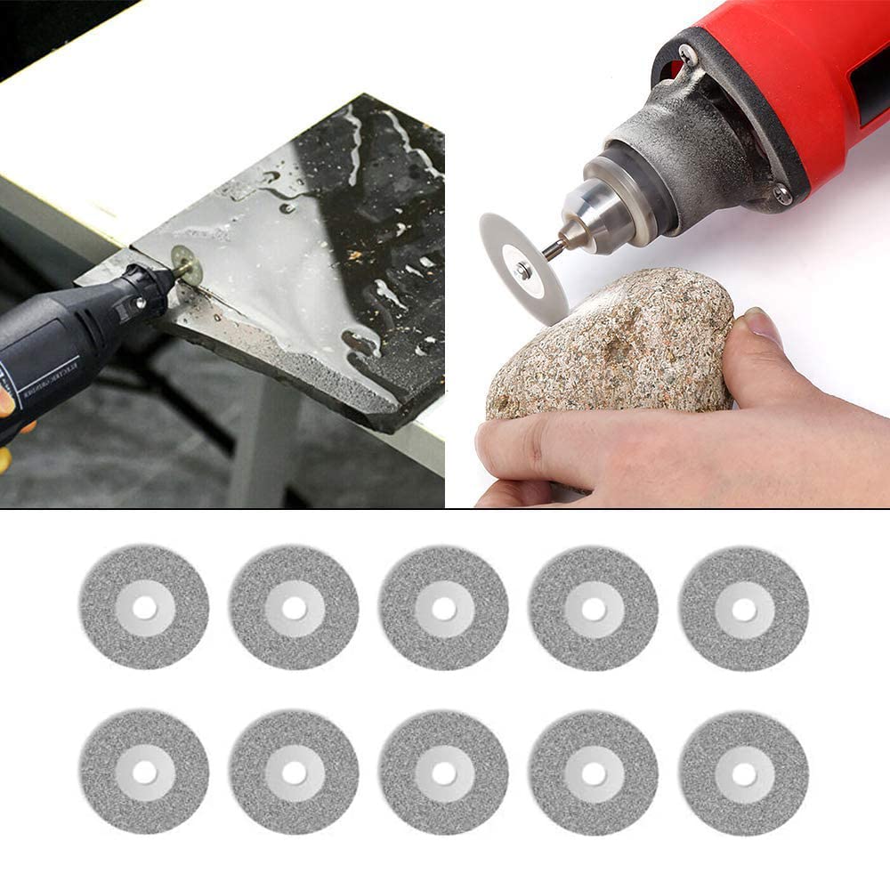 Nom du produit : couteau à couper la pierre Matériel: émeri Taille : Tige : 3,5 x 0,3 cm, Meule : 22 mm Couleur: blanc argenté Le forfait comprend: 20 couteaux à couper la pierre 4xmandrin 1xtournevis Conseils chaleureux : 1., Veuillez permettre un écart de mesure dû à une mesure manuelle., 2., En raison de la différence entre la lumière et l'écran de l'ordinateur, la couleur du produit peut être légèrement différente de celle de l'image. OUTILS PRATIQUES: Spécialement conçu pour être utilisé les bricoleurs, artisans, bijoutierset orfèvres, ce disque à tronçonner diamanté est durable et résistant. Conseils d'utilisation: Pour votre sécurité,vous travaillez avec des outils diamantés un masque respiratoire avec filtre à poussière, des chaussures de sécurité,des gants Il peut devenir très chaud lors de la découpe, ajoutez un peu d'eau pour le maintenir au frais Accessoires pour Outils Rotatifs Mandrin/Universels Découpage/Polissage Application: Ce jeu de lames de scie convient à la découpe de plaques plâtre,tubes en caoutchouc granit,marbre,etc Ces disques de coupe en diamant sont fins et tranchants Avec durabilité et qualité stable. Disque Diamant Dremel 20 Pièces Disque À Tronçonner Diamanté 22Mm Disque Diamant Pour Accessoires Pour Outils Rotatifs Dremel Avec 4 Mandrin 1 Tournevis Mini Disque Diamant A Tronconner Pour Coupe Pierre Verre Mandrin Dremel Veuillez prendre la couleur réelle en standard., 3., Si vous avez des questions après avoir reçu le produit, vous pouvez nous envoyer un e-mail à tout moment, nous vous répondrons dans les 24 heures et vous fournirons une solution satisfaisante. Ils offrent une solidité remarquable, permettant des coupes précises et durables dans les matériaux les plus durs. Durabilité et Résistance Exceptionnelles :le disque à tronçonner diamanté Fabriqués à partir de matériaux de haute qualité, est un segment de bloc de diamant avec une haute densité de diamant. Compatibilité : disque à tronçonner en résine 32 mm, disque à tronçonner diamant 35 mm, diamètre du mandrin 3 mm, longueur 38 mm, longueur du tournevis plat...