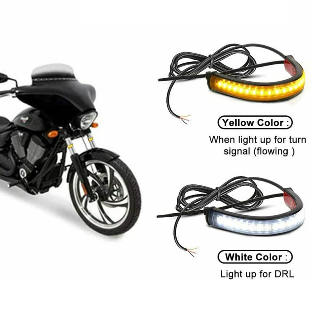 【Facile à installer】Ruban adhésif double face à l'arrière et avec attache de câble autobloquante pour améliorer la résistance, facile à installer et à fixer la bande de clignotant. Méthode d'installation Installation facile avec ruban adhésif et serre-câble Durée de vie : 50000 heures Compatibilité Universel pour toute autre moto avec fourches de 39 à 70 mm Outils de maison 4pcs moto 12 LED clignotants clignotants lumière Lumière brillante Venez avec 36pcs super lumineux 3014-SMD Leds chaque bande, enroulez autour de vos fourches de moto. Achetez Lot de 2 clignotants LED pour moto, clignotants flexibles bicolores blancs et ambres pour fourche. Perles de lampe: lumière blanche 18LED + lumière jaune 18LED, Tension : 12 V CC Utilisé comme feu de signalisation avant et arrière. Biqing La bande lumineuse LED fonctionne pour la plupart des motos 12 V La bande lumineuse pour moteur offre une excellente résistance à la chaleur et aux chocs, et est étanche. Installation facile grâce au ruban adhésif double face à l'arrière et à la boucle autobloquante de la ceinture flexible en fer pur Le feu orange augmente considérablement votre champ de vision par mauvais temps et rend votre conduite plus sûre. 2PC CLIGNOTANTS LED Moto Clignotants Indicateur Ambre Fumée Universel... Le fil rouge vers DRL/Driving Light 【Compatibilité】 Convient à toutes les motos avec fourche avant de 39 à 70 mm. Deux fonctions : Il gardera la couleur blanche comme feux de jour, passera à la couleur jaune comme clignotants lorsque vous tournez à gauche ou à droite. Clignotants Fourche Moto 2Pcs Moto Led Fourche Lumière Universelle 5 "Flexible Led Clignotant Moto Led Couleur de la lumière : lumière blanche (feux diurnes) + lumière jaune (clignotant)