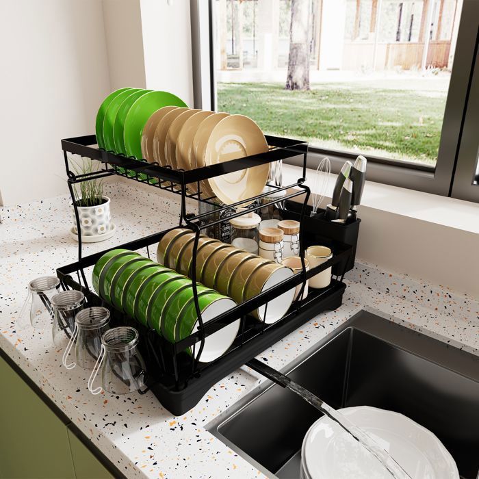 Aucun outil n'est nécessaire pour l'installation. L'organisateur d'ustensiles peut utiliser pleinement l'espace de la cuisine Egouttoir Vaisselle Ikea SAYZH Égouttoir à Vaisselle Amovible à 2 Niveaux Avec égouttoir à Vaisselle De Grande Capacité Avec Porte-ustensiles, égouttoir à Tasses Pour Comptoir De Cuisine, Blanc égouttoir à Vaisselle Ikea Parfait pour une utilisation à long terme. Facile à régler, la vaisselle peut facilement évacuer l'excès d'eau et le canaliser dans l'évier. égouttoir Pliable 2 Niveaux YunNasi Égouttoir Vaisselle Pliable YunNasi 2 Niveaux - Métal Blanc Avec Porte-ustensiles - Gain De Place évier Egouttoir Vaisselle Sur Evier Parallèlement, vous pouvez facilement le nettoyer en le rinçant simplement sous l'eau courante et en le séchant avec une serviette L’égouttoir à vaisselle Maximex propose 2 niveaux de rangement super pratiques. Vous pourrez y faire sécher vos assiettes et vos verres tandis que les couverts, eux, prendront place dans le panier destiné à cet effet Égouttoir à vaisselle multifonction : cet égouttoir à vaisselle avec égouttoir dispose d'un égouttoir divisé en deux espaces. En plus de l'espace vaisselle, vous pouvez garder des cuillères, couteaux, fourchettes et autres petits ustensiles de cuisine dans des compartiments séparés, et les poignées de transport sont rétractables pour être accrochées dans l'évier ou sur le plan de travail Installation facile et pratique : l'égouttoir de comptoir de cuisine est simple en structure et facile à installer. Il est équipé d'un porte-couverts et d'un support de tasse, ce qui le rend idéal pour ranger des assiettes, bols, tasses et même casseroles et poêles Ainsi... De quoi gagner de la place, sans minimiser votre espace d’égouttage. Parallèlement, quatre pieds antidérapants en silicone peuvent maintenir le séchoir fermement en place. Ne vous souciez plus de l'eau sur le plan de travail