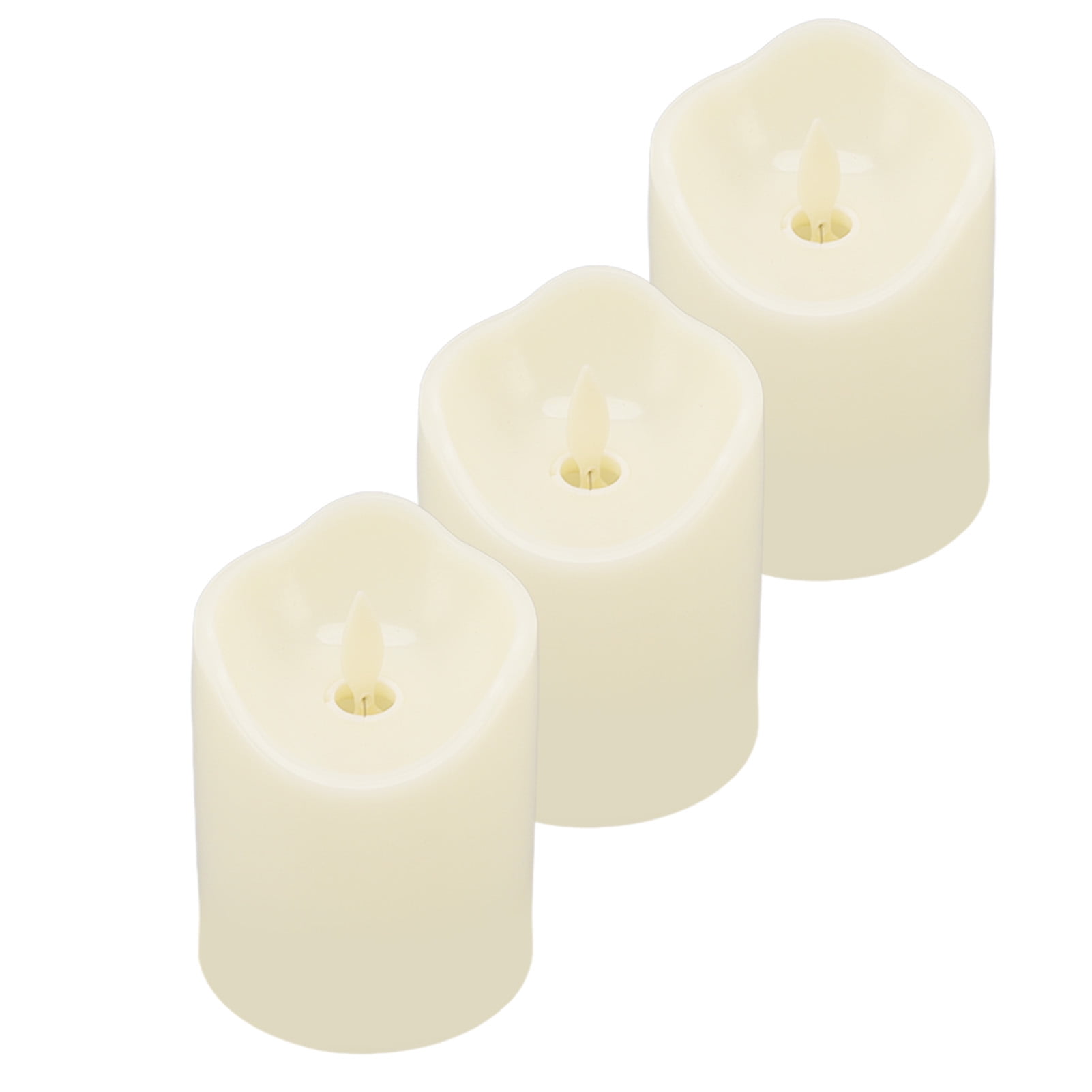 Our ultra bright LED candle with a fine base offers a slight variation in the characteristics of our original 1524 series candle. This version features a thinner base that is only 1.5 inches deep, so the candle sits nicely on a thin windowsill Notre bougie LED ultra lumineuse avec une base fine offre une légère variation des caractéristiques de notre bougie originale de la série 1524., Cette version dispose d'une base plus mince qui ne fait que 3,8 cm de profondeur, de sorte que la bougie repose bien sur un rebord de fenêtre fin. Le cycle se répète toutes les 24 heures. Bougie Venti 3 Mèches LED à Piles 612 Vermont VT 2813 OW 4R Set Of 4 Ultra Bright LED Candles La minuterie automatique allume la LED pendant 6 heures et s'éteint pendant 18 heures. Pour 26,7 cm ou 22,9 cm de haut., Lot de 4 bougies. Répétition du cycle toutes les 24 heures. Base en métal avec finition onyx mat. Le lot comprend 4 bougies. LED en verre avec minuterie automatique intégrée. Minuteur automatique (allumé 6 heures, éteint 18 heures) ; répétition quotidienne Nos bougies de niveau... Pour fonctionner, il suffit d'insérer 3 piles AA non fournies, et de visser l'ampoule.