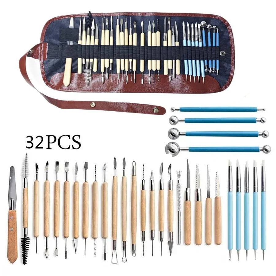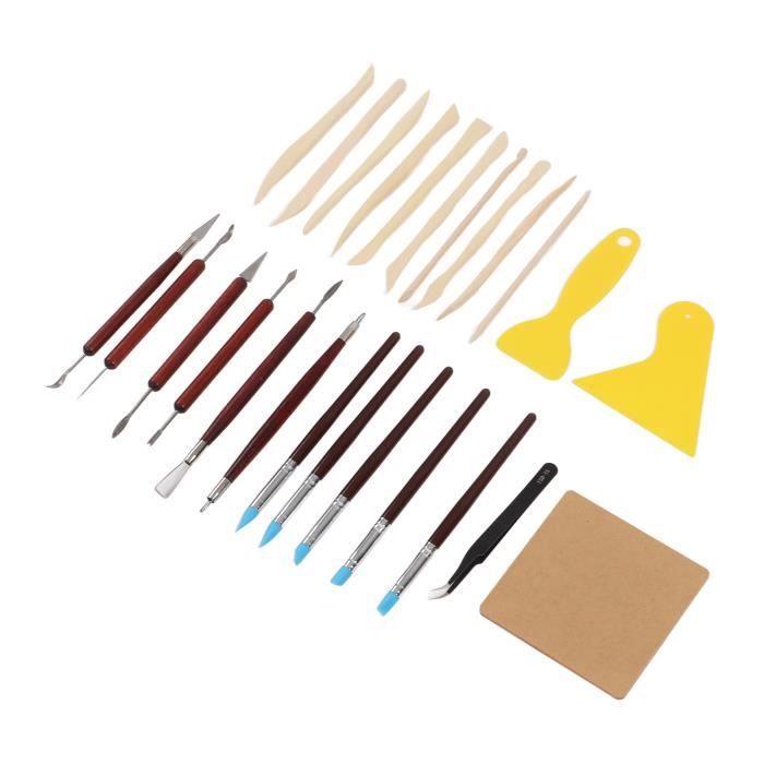 dans le processus de production de la céramique ou de l'artisanat en argile ★ Large gamme d'utilisations pour la peinture, le grattage, le nettoyage, le ponçage, le moulage, la sculpture et la coupe de modèles de céramique, d'argile, de cire et d'autres objets d'artisanat 16 cm / 6,3 pouces Stylos à pointe en silicone: env. Ensemble d'Outils de Sculpture en Argile Polymère Sculpture en Céramique Double Face Sculpture en Poterie Cadeaux de Mise en Forme pour Apprenants 3 Pcs Lot de 32 outils de sculpture de poterie et d'argile, multifonctionnel double face en céramique, kit d'outils de sculpture avec sac de rangement pour débutants... Clay Art Ensemble D'outils De Sculpture En Argile – Outils De Air Dry Clay Taille:Outils de sculpture sur argile: env. ★ Fonctionne pour la sculpture, la mise en forme, le modelage, la coupe, le grattage, le lissage, le nettoyage, etc. ★ Cet ensemble d'argile polymère contient un sac de rangement, une éponge, un pinceau, un stylet à bille, des stylos en silicone, des outils de pointage, des outils de poterie de modélisation, des outils de sculpture sur argile 16,5 cm / 6,5 pouces Outils de poterie de modélisation: env. Outil polyvalent, qui peut répondre à vos besoins en pâte à modeler dans divers projets d'artisanat et différents effets créatifs de différentes tailles
