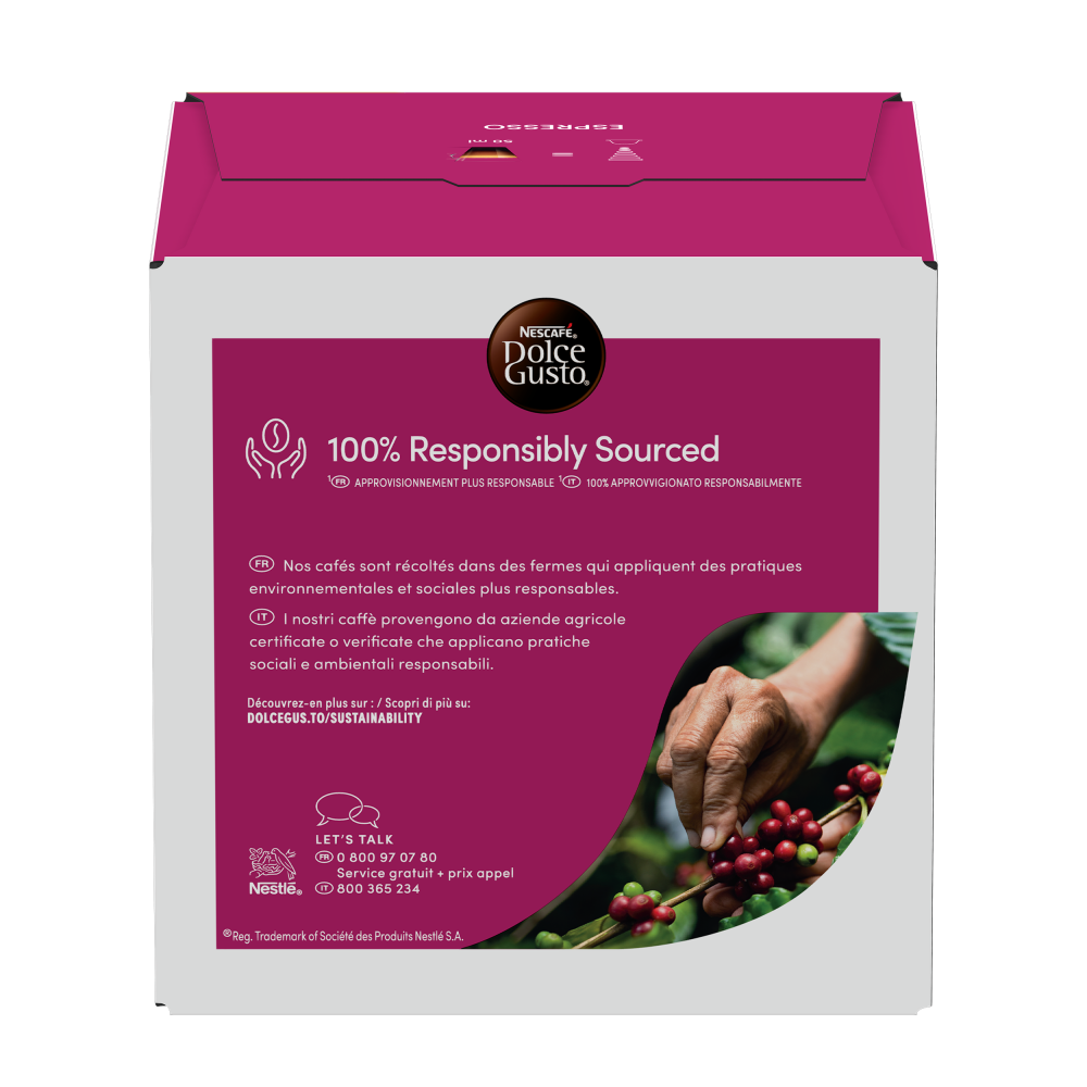 Compatibles Nescafé Dolce Gusto Napoli Capsules Café Caffè Vergnano Napoli - Compatibles Nescafé Dolce Gusto (Lot 6x12 Capsules) Café Compatible Dolce Gusto Avertissement De Sûreté A consommer avec modération, surtout si vous êtes enceinte ou si vous êtes sensible à la caféine. Capsules originales de café Nescafé Dolce Gusto Espresso ROMA Découvrez l'atmosphère intemporelle de la capitale avec NESCAFÉ DOLCE GUSTO ESPRESSO ROMA, un expresso riche et intense. Café de 5 origines différentes, savamment mélangé pour créer un expresso au goût riche et rond, révélant un corps velouté aux notes grillées de cassis Nestle Nescafé Ristretto | Espresso Scurt | Dolce Gusto Ristretto Ardenza | NESCAFÉ Cafe Capsule The lively soul of Rome in an espresso, intensity 8/13 · A blend inspired by the Italian tradition of coffee, roasted and ground · Original capsules for NESCAFÉ... Expresso au goût riche et rond.