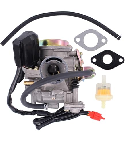 Largeur de raccordement du filtre à air = 41 mm. E-CHOKE INCLUS : Le carburateur est livré avec un Starter electrique. CARACTERISTIQUES TECHNIQUES : Gicleur principal 4 mm Bing 82, gicleur secondaire 33, diamètre de raccordement du Manchon dadmission 28 mm, diamètre de raccordement du filtre à air 41 mm. 2EXTREME Carburateur Embout d'aspiration pour BENZHOU YY50QT-3, YY50QT-4, YY50QT-5, YY50QT-6. Carburateur de remplacement pour le moteur chinois 50 cc 4... Ce composant peut être facilement remplacé par l'original, garantissant un démarrage efficace et un fonctionnement optimal. Ce starter électrique automatique est conçu pour s'adapter parfaitement à divers carburateurs, notamment ceux fabriqués en Chine 4 temps, pour Peugeot, Piaggio et les véhicules à moteur Minarelli. La livraison est effectuée avec un collecteur d'aspiration. Groupe Principal Carburateur 50 M4 QMB139 BENZHOU 50 YY50QT-3 4T 2008 NEU ZYLINDER KIT ZÜNDKERZE SET für BENZHOU YY50QT-25 50ccm 4T bis2017 COMPATIBILITÉ : Compatible avec Baotian BT49QT-9, ZNEN ZN50QT-E, REX RS450, Peugeot V-Click, Flex-Tech Fun 50 YY50QT-6A, Jinan QingQi QM50QT-6(A), Beeline Veloce GT 50., REMPLACEMENT POUR GAZEURS USÉS : Souvent, les carburateurs originaux sont de mauvaise qualité et susent rapidement - ce carburateur standard est un remplacement bon marché. Jeu d'alésoirs de gicleurs 0,4-1,6 mm JMP 15,80 € Ajouter au panier En stock Jeu Galets Variateur 5.0 g JMP 15x12 mm 6,86 € Ajouter au panier En stock Joint d'Embase Ep. OE 50cc AGM/Aprilia/Beta/China Motor/Baotian/-- 05- 3,42 € Ajouter au panier En stock Joint de Culasse Yamaha/ATU/Baotian/Adly/China Motor/Beta/-- 50cc 2T 3,42...