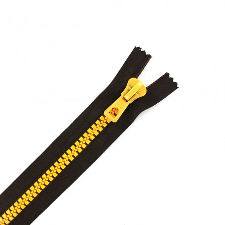 Fermeture éclair marron foncé avec grosses dents jaunes bicolores à extrémité ouverte 40 cm S12 (1 pièce), Longueur : 40 cm., Extrémité ouverte. Grosses dents en plastique. Catalogue des fermetures Éclair Fermeture éclair Prym Femme Fermeture Eclair® Non Séparable Synthétique Bicolore - Marron /tournesol - - Ma Petite Mercerie Fermeture Eclair 60 Cm Idéales pour vêtements de sport, sacs, ameublement et projets techniques. Fermeture éclair Prestil 110 séparable coloris Jaune paille. Chaine de grande qualité en nylon de 5 mm. Retrouvez tous les articles nécessaires à la... Fermeture éclair 15 cm moulée en résine, Oeko-Tex. Idéale trousses, poches, accessoires. Curseur métal, solide et fluide. Modèle Z53