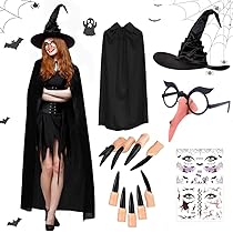 La cape de sorcière noire est en flanelle, confortable et belle ; le chapeau de sorcière noir est en tissu Oxford, doux et durable ; les faux ongles et le nez sont en silicone, doux et réutilisables ; les lunettes de chauve-souris sont en plastique, léger et cool ; les gants en forme de crâne sont en polyester, doux et respirant. Ils sont également parfaits pour les fêtes costumées, les représentations sur scène, les représentations théâtrales scolaires, les soirées à thème, Noël, les carnavals et d'autres occasions. Déguisement Squelette Femme 6PCS Accessoires De Costume Sorcière Femmes, Cape Sorcière Chapeau De Sorciere Femme Vous pouvez les porter pour devenir une sorcière, ou utiliser ces accessoires pour décorer votre chambre ou votre jardin d'Halloween. Occasion : parfait pour les fêtes d'Halloween, les événements de cosplay, les rassemblements à thème, le cosplay et plus encore. 🌙【Taille universelle】La cape de sorcière pour femme mesure 150 cm de long ; les chapeaux d'Halloween pour femme sont pliables, la longueur et la hauteur avant pliage sont de 38 cm × 30 cm ; les lunettes de soleil, le faux nez et les gants d'Halloween conviennent à la plupart des adultes et des enfants ; les faux ongles ont un design d'ouverture et une taille unique s'adapte aux doigts de la plupart des gens. 🧙 Embrassez votre sorcière intérieure Libérez votre sorcière intérieure avec ces accessoires de sorcière pour adultes indispensables ! Offrez-les à vos amis et aux membres de votre famille, et habillez-vous ensemble pour créer une atmosphère d'Halloween ! 🔮【Matériaux de haute qualité】 Les costumes de sorcière d'Halloween sont conçus pour améliorer votre look de sorcière tout en vous faisant sentir à l'aise. Set sorcière chapeau et cape noir et argent femme : Ce set de sorcière comprend un chapeau noir transparent à motifs toiles d'araignées argentées et d'une cape noire transparente à imprimé halloween Cape et chapeau noirs de sorcière motifs dorés Coloriage Chapeau de Sorcière Gratuit - télécharger et imprimer gratuit... 🧙♀️【Contenu de l'emballage】 L'ensemble d'accessoires de costume de sorcière comprend : une longue cape de sorcière noire, un chapeau de sorcière noir avec dentelle, une paire de lunettes de fête en forme de chauve-souris, un nez de sorcière, une paire de gants en forme de crâne et dix clous de sorcière. Mélangez et assortissez avec votre tenue d'Halloween préférée pour un look vraiment enchanteur qui laissera tout le monde sous le charme. Facile à mettre et à enlever, embrasse rapidement l'esprit d'Halloween. Remarque : il y aura une légère odeur de silicone après ouverture, ce qui est normal. Chapeau Sorcière Enfant