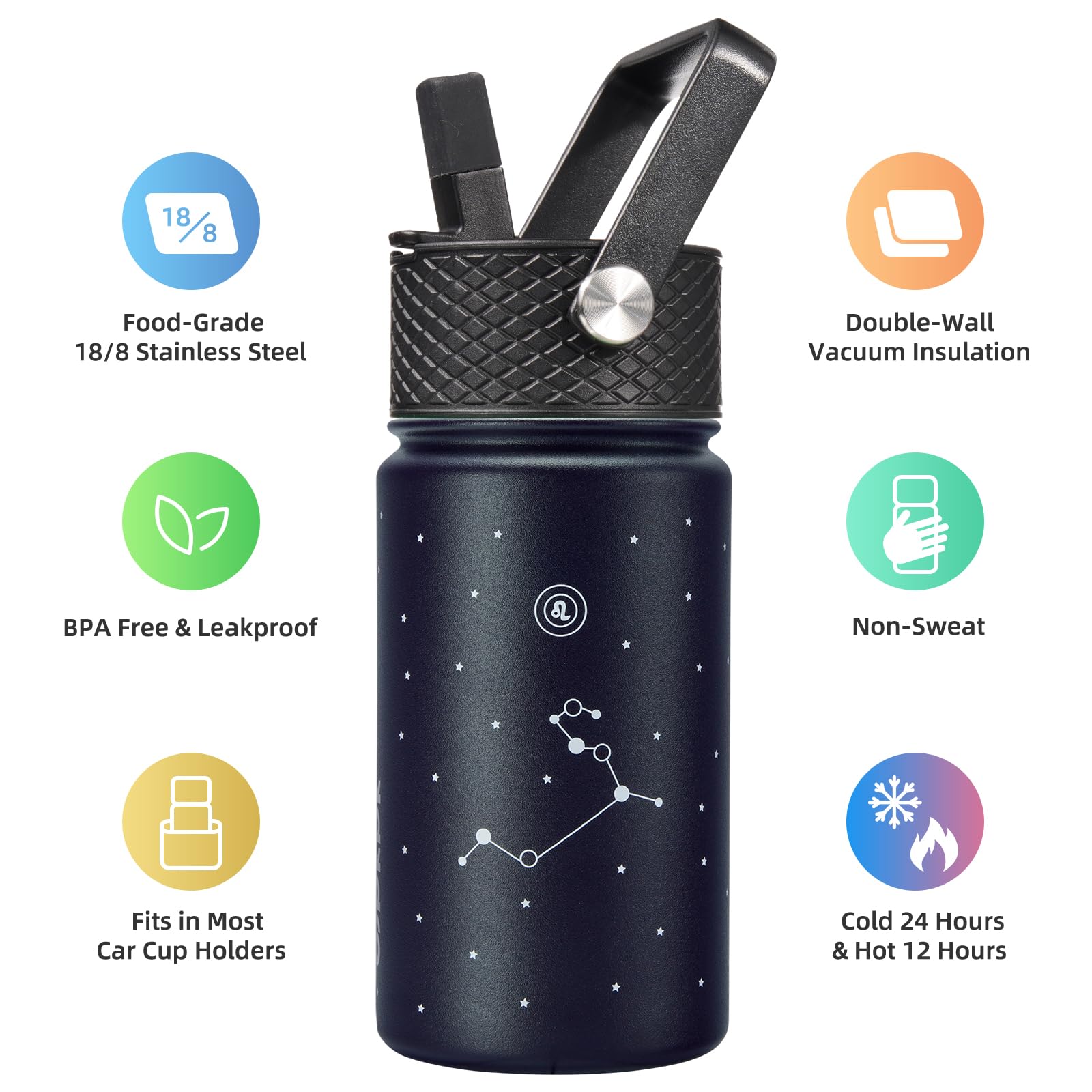 Conçu pour les enfants : la poignée robuste et le couvercle à paille rabattable sont adaptés pour les petites mains des enfants. La conception de buse large ne prendra pas trop d'aspiration. MILTON Lot de 16 bouteilles d'eau de 170 g pour enfants pour l'école avec couvercle à rabat anti BJPKPK Bouteille D'eau Isotherme Pour Enfants Avec Couvercle à Paille, 445 Ml, Bouteille D'eau Isotherme Pour L'école, Réutilisable, Anti-fuite, Sans BPA, Pour Halloween Le revêtement en poudre durable donne non seulement à cette jolie bouteille d'eau un look dynamique, mais empêche également vos mains de transpirer et de glisser. Facile à nettoyer : livré avec 2 pailles et 1 brosse à paille pour que vous puissiez changer et garder cette bouteille d'eau en métal propre avec facilité. Sa taille compacte le rend idéal pour les petites mains, tandis que la construction durable en acier inoxydable garantit une utilisation durable. La couleur des couvercles peut varier en raison des différences de lot. Remarque : deux types de couvercle de paille seront expédiés au hasard. Livré avec 30 motifs différents au choix, les filles et les garçons vont adorer cette tasse. Bouteille d'eau sans BPA avec paille et poignée de transport : dispose de 2 pailles/2 becs en silicone, tous amovibles pour un nettoyage facile. La poignée confortable le rend facile à transporter, ce qui en fait également un choix idéal pour les activités de plein air ou une utilisation quotidienne Matériaux de qualité alimentaire : fabriquées en acier inoxydable 18/8, les bouteilles d'eau isothermes BJPKPK sont 100 % sans BPA, sans plomb, entièrement... Conception portable - Il offre un moyen pratique et écologique pour les enfants de rester hydratés tout au long de la journée. Large ouverture pratique pour le remplissage et le nettoyage.