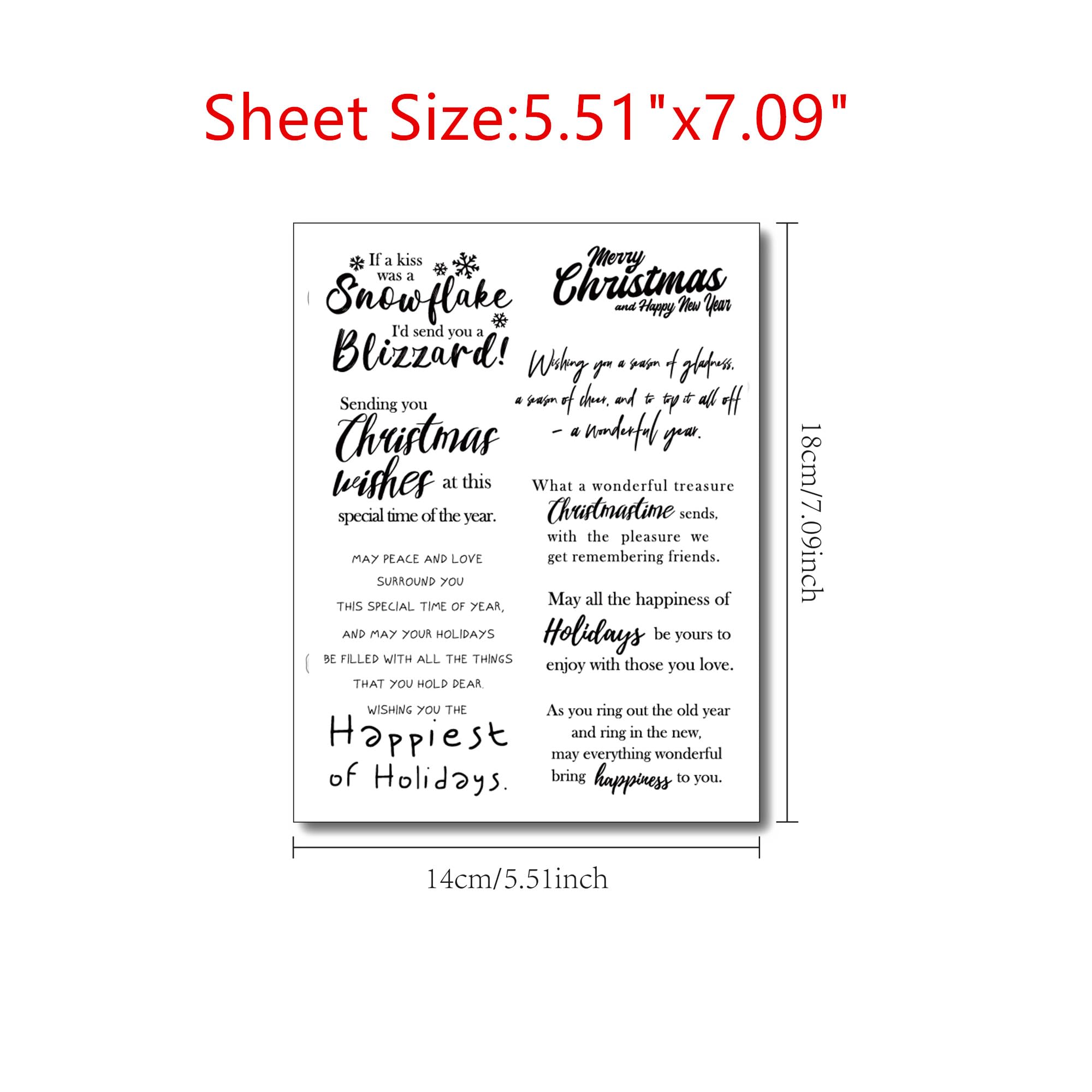 Ces tampons transparents avec versets de Noël sont polyvalents et ils sont parfaits pour la fabrication de cartes sur le thème de Noël ou d'hiver, les journaux, les étiquettes cadeaux, les décorations de pages de scrapbooking, les agendas, les carnets et autres décorations en papier. Dimensions de la feuille : 11 x 16 cm Tampons Transparents Avec Mots De Bénédiction « Merry Christmas Cet assortiment compte 13 tampons différents représentant des motifs de Noël typiques comme une guirlande lumineuse, des sucres d'orge, des anges, des bonshommes en pain d'épice, des étoiles, un sapin, une couronne et différentes inscriptions d’env.1,2 à 14 cm. Description du produit Contenu : 1 feuille de tampons transparents sur le thème de Noël. Mode d'emploi : décollez le sceau du tampon transparent, collez-le sur le bloc acrylique (non inclus), appliquez l'encre uniformément, localisez la position sur la surface, puis estampez avec force le motif, et créez de superbes motifs en quelques minutes. Laissez libre cours à votre imagination et créez des œuvres DIY originales avec les tampons en silicone VBS. Spellbinders Lot de tampons transparents avec dictons du Père Noël Excellente idée cadeau : ces tampons en caoutchouc de silicone sur le thème des vacances d'hiver sont le cadeau parfait pour tous ceux qui aiment les projets d'artisanat et de bricolage. Il est également parfait pour le journal, le scrapbooking et d'autres projets de loisirs créatifs. Timbres transparents en Silicone avec citations inspirantes, mots de bénédiction, tampons transparents pour bricolage. 4,51€. 28 vendus 5. Timbres transparents... Pour pouvoir profiter longtemps de vos tampons en silicone transparent, il est recommandé de les nettoyer aussitôt après utilisation avec un nettoyant pour tampons. Le silicone offre aux tampons une flexibilité très appréciable et leur permet d’être utilisés sur différents supports comme le papier, le tissu ou le bois. Qualité supérieure : le lot de tampons en caoutchouc avec dictons Merry Christmas est fabriqué en silicone de haute qualité, robuste et durable.