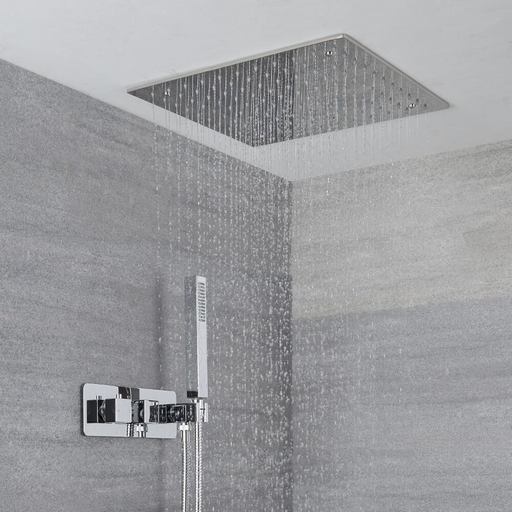 Hauteur réglable , Autonettoyante Pommeau de Douche Effet Pluie Katezon 30 cm à Haut Débit Avec Bras de 40 cm, Pommeau Carré en Acier Inoxydable, Buses en Silicone Autonettoyantes, Design Ultra... Katezon Pommeau De Douche à Effet Pluie, Haute Pression, Haut Kit de Douche Thermostatique Encastrable Pommeau Plafond 40cm & Buses hydromassantes Fonctions distinctes ou simultanées