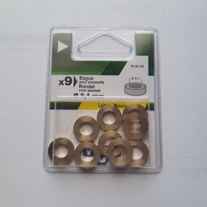Anneau en laiton pour gond. Code du fabricant - BPG014Q10 Type de produit : anneau en laiton pour tunnel Matériau : laiton Épaisseur : 1,5 mm Diamètre : intérieur : 15 mm ; extérieur : 25 mm Lot de 8, Paquet de 8 , Marque: Générique Convertisseurs de gonds et rondelles Bague En Laiton 15 Mm Bague Pour Gond De Portail Au Meilleur Prix | Leroy Merlin Bague Volet Battant 15 Mm Fabriquée en laiton de haute qualité, cette bague ne se contente pas d'améliorer la durabilité ; elle ajoute également une dimension esthétique avec son éclat caractéristique. Support de bague en laiton, largeur 15 mm, réglable. Percée sur les... Bague de paumelle Série Grille SG8 8X3,5X16 mm Cette bague de paumelle se pose un gond de portail ou de grille, d'où son nom (SG) Série de Grille. Elle sert à régler la hauteur de la grille ou du portail. 100% en laiton, cette rondelle est d'excellente qualité