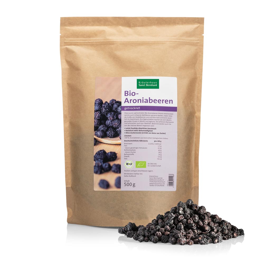 Sel (20 g) de baies d'aronien séchées. Ingrédients 100 % Baies d'Aronia, 100 % baies d'aronien , Qualité biologique , Sans sucre ajouté Fruits Secs Bio Végétaliens Baies D'Aronia Bio Séchées - 500g Entières, 100% Naturelles - Sans Additifs - Idéales Pour Snack Ou Préparations Baies Séchées Sans Additifs Fruits Séchés Baies D'aronia Bio - 150g (séchées) - So | Nature & Découvertes Baies D Aronia Baies d'aronia séchées biologique - 100 g - Compléments alimentaires produit par Les Vergers De Raulhac autour de Neuvic - 19160 Ces baies d'aronia séchées Aronia ORIGINAL en sachet de 500g, c'est du 100% bio et naturel. Séchées en douceur pour préserver leurs nutriments, sans sucre... Leur goût légèrement acidulé se marie à tout : parsemez-les sur vos salades, mélangez-les à vos yaourts, incorporez-les dans vos gâteaux ou grignotez-les telles...