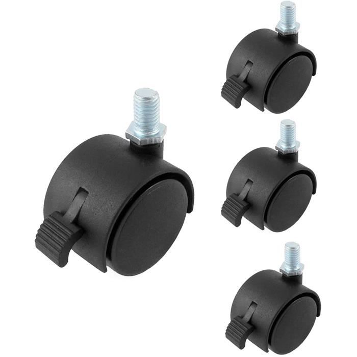 Kit composé de 4 roulettes pivotantes de 40 mm, avec tige filetée M10 x 12 mm. Roulettes Pivotantes Alex - Consigne Bagage, Valise Rigide, 4 Roues Jumelées, 75 Cm, 119 Roulette Meuble Vis Convient pour les surfaces délicates telles que les tapis, les carreaux, le PVC, etc. Kit composé de 4 roulettes pivotantes de 40 mm, avec tige filetée M10 x 12 mm. Facile à installer, ces roues optimisent et améliorent vos meubles grâce à leurs roulements à billes, qui offrent une glisse douce et silencieuse. Kit composé de 4 roulettes pivotantes de 40 mm, avec tige... Brouette Haemmerlin Pick Up 110 litres verte pvc roue gonflée charge utile 160 kg Les roulettes doubles conviennent parfaitement aux chaises de bureau à cinq branches. Roues pivotantes pivotantes à 360° pour un changement de direction flexible. Idéal pour les meubles tels que les tables de télévision, les placards, les tables de chevet, les meubles, les valises/les coffres, etc. Convient pour les surfaces délicates telles que les tapis, les carreaux, le PVC, etc. Charge totale par roue : 20 kg Filetage : M10 x 12 mm. Contenu de l'emballage : 2 roues... Diamètre de filetage: 10mm , Hauteur filetage: 12mm Idéal pour les meubles tels que les tables de télévision, les placards, les tables de chevet, les meubles, les valises/les coffres, etc.