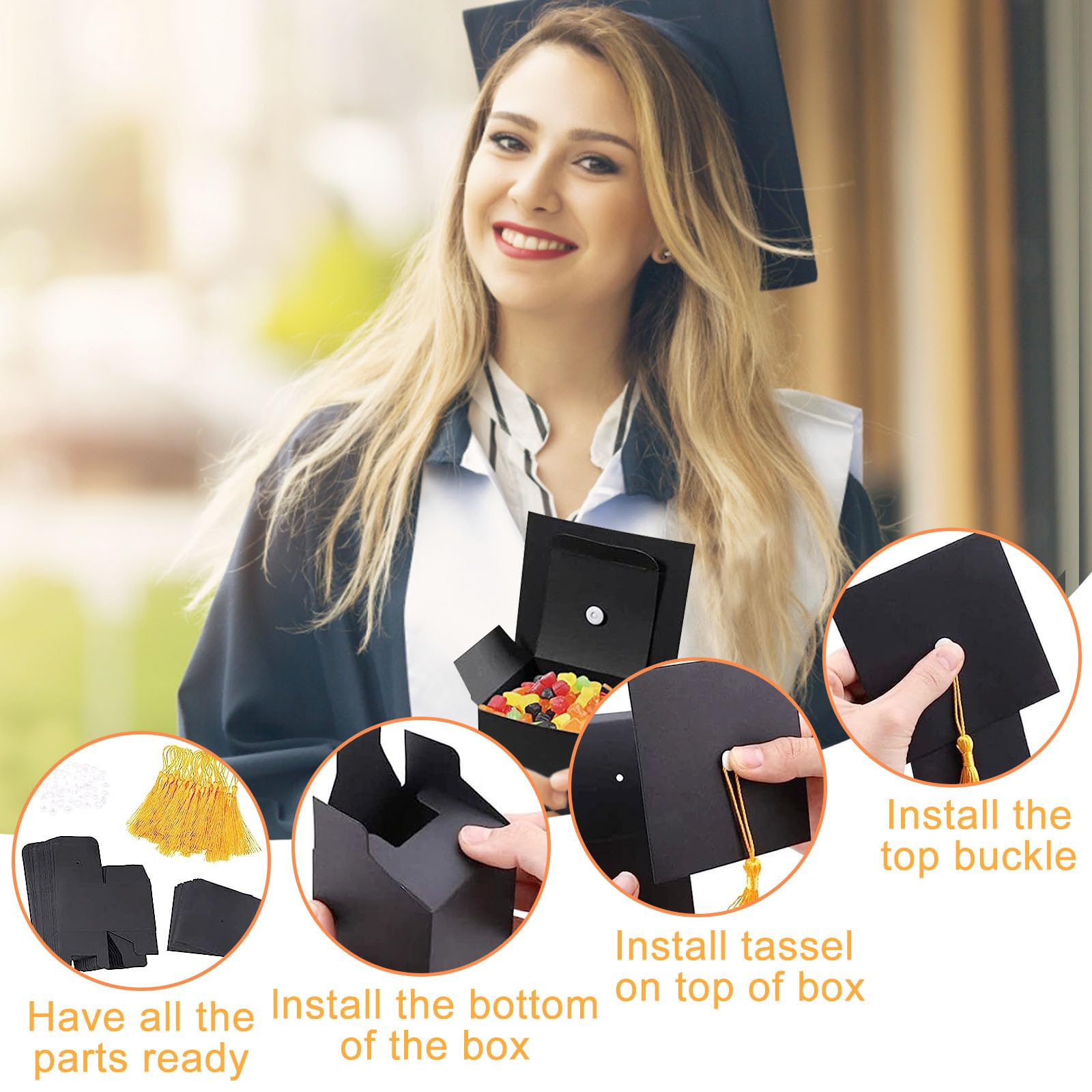 Description : 1., Le coffret cadeau en mortier a un design simple et élégant, une structure simple et est facile à plier. Coiffe jetable-boîte de 100 pièces Toute l'inspiration mode et les dernières tendances sont en ligne sur SHEIN. C'est une décoration de fête exquise pour les cérémonies de remise des diplômes et les thèmes de vacances, ajoutant du charme à la fête. 【Facile à assembler】 : Boîte Cadeau Chapeau de Graduation est très simple à assembler, aucune colle ou autre outil n'est nécessaire. La combinaison du doré et du noir est très à la mode., 2., Surprenez leurs camarades de classe et leurs professeurs en écrivant leur nom sur la boîte après avoir goûté les délicieux plats., 3., Ces boîtes à bonbons sont parfaites pour les fêtes de remise des diplômes et rendront votre fête plus spéciale et mémorable. 【MATÉRIAU DE HAUTE QUALITÉ】: Boîte de Bonbons de Remise des Diplômes est composé de papier de haute qualité et de pompons jaunes, le traitement est excellent, la forme est unique, structure simple, facile à plier et à réutiliser. Les petits et mignons coffrets cadeaux aimeront certainement vos amis et rendront votre fête inoubliable. Spécifications : Couleur: noir Matière: Papier Taille: 5,5 × 5,5 × 9 cm/2,16 x 2,16 x 3,54 pouces Le forfait comprend : 30 x Boîte à bonbons chapeau de docteur Remarque : 1., Veuillez ne pas mordre, déchirer avec la bouche ou couper avec des objets pointus., 2., Si vous avez des questions, veuillez nous contacter et nous vous répondrons dans les 24 heures. Ces coffrets cadeaux en forme de bonnet de remise de diplôme sont conçus avec des éléments classiques de la scène de remise des diplômes et imprimés avec du texte. Boite Chapeau 20 Pièces Boîte De Bonbons De Fête De Remise Des Diplômes Conception Boite A Chapeau Design Unique : La bonbonnière en forme de chapeau de graduation convient parfaitement aux réceptions de remise des diplômes. Ces boîtes de bonbons exquises... Chapeau Diplome Americain 24 Piu00e8ces Bou00eetes U00c0 Bonbons De Remise Des Diplu00f4mes Casquette Bou00eete Cadeau Diplome