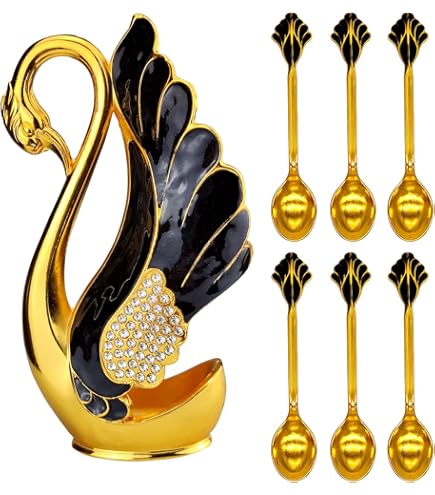 C'est le cadeau parfait pour les amoureux, les amis, les leaders et les membres de la famille., 4., En raison des mises à niveau du produit, certains emballages du produit n'ont pas pu être mis à jour simultanément, veuillez noter que l'ancien et le nouvel emballage seront expédiés au hasard Merci de votre compréhension. Description : le cadeau parfait, le design unique et le look élégant sont la combinaison parfaite pour les femmes au foyer passionnées, les chefs gastronomiques et les amateurs de cuisine. C'est un excellent cadeau d'anniversaire pour la famille ou les amis Donnez un jeu complet à la créativité, la belle base en forme de cygne est également alignée et rangée, se transformant en une boîte de maquillage sur la coiffeuse, le porte-stylo exquis sur le remplacement et le stockage des ustensiles dentaires sur l'évier de la salle de bain, ce qui est une décoration attrayante et exquise., 3., Le cygne est également un symbole de paix, de gentillesse, de bravoure et d'ambition. QXXSJ Ensemble De Tasses à Café En Porcelane Avec Cullères Et Support Il sera plus délicat et beau lorsqu'il est associé à un ensemble de tasses à thé avec bordure dorée sur la bande supérieure. Application : 1., En forme de cygne réaliste, pleine de beauté, la cuillère assortie est ronde et mignonne. C'est le meilleur point fort pour profiter d'un thé romantique. C'est le beau paysage, qui ajoute une touche de couleur vive à la maison, et a de bonne humeur chaque jour, peut être utilisé non seulement comme vaisselle mais aussi comme décoration., 2., Il est adapté pour le café, les gâteaux, les desserts, la crème glacée et plus encore. Facile à fixer : le haut de la cuillère est conçu avec une forme de nœud, et toutes les cuillères peuvent être fixées ensemble par un petit crochet. Ce n'est pas seulement de la vaisselle mais aussi de la décoration. On l'appelle « l'ange de la beauté et de la bonté ». cuivre Élucidation adolescent fourchette à tarte Centre Métaphore sucré Contenu : 1 base en cygne., 6 cuillères. Un cadeau parfait pour un mariage ou vos amis et votre famille. Barre De Café De Support De Base De Cygne De Ruban, Dinant La Table De... Caractéristiques : Couleur : doré Matériau : métal Matériau métallique de haute qualité, pas facile à déformer, durable, résistant à la saleté et facile à nettoyer, base antidérapante, tête de cuillère ronde et polie miroir, ne blesse pas votre bouche, soyez assuré de profiter du délicieux, la poignée a une perle dorée, très féminine. Dimensions : environ 8 x 15,5 cm. Mode d'emploi : Veuillez vérifier soigneusement la taille avant d'acheter. 【Haute qualité】Les cuillères sont fabriquées en métal de haute qualité, robuste et durable, résistant à la corrosion et ne rouille pas facilement.