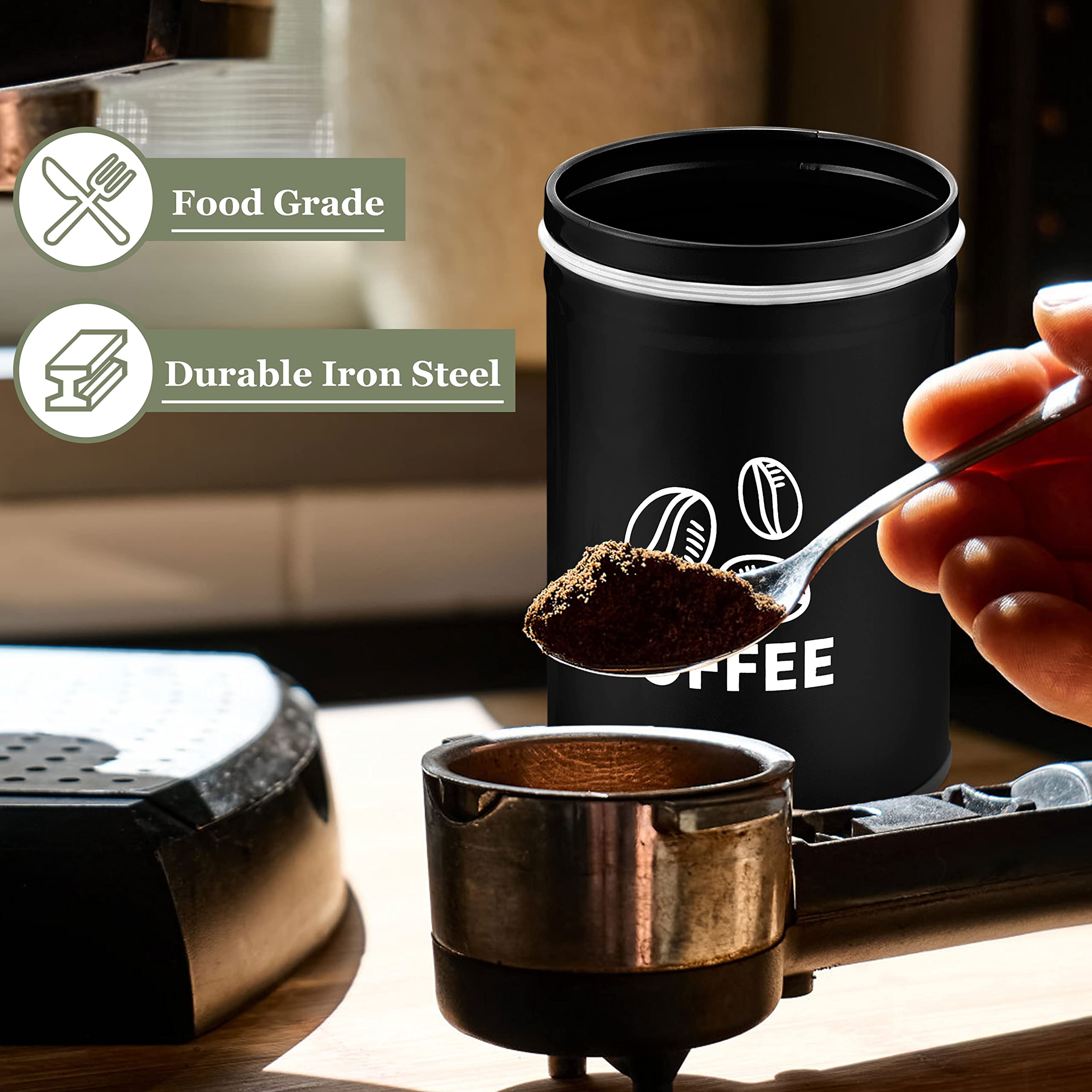 Verrouillage de la fraîcheur : le joint en silicone amovible protège les aliments de l'humidité et de la poussière et conserve la fraîcheur. Comment en prendre soin ? Sécher avec un chiffon immédiatement après le lavage et stocker dans un endroit sec pour garder les aliments secs et propres. XYQXYQ Lot de 3 boîtes blanches pour la cuisine, thé, café, sucre, café avec couvercles hermétiques, boîtes de rangement noires HEROGO Lot de boîtes à thé, café et sucre : fabriquées en métal de qualité alimentaire, aucun matériau nocif ne peut entrer dans vos aliments. Fabriqué en métal de qualité alimentaire, aucune substance toxique ne tombera dans vos aliments, assurant votre santé et votre sécurité. Dimensions : Dimensions : 18,2 x 11 cm., Capacité : 1 litre., Matériau : Métal Le design simple et classique convient à de nombreux styles de cuisine. Look simple et classique : convient à la plupart des styles de cuisine, imprimé avec des motifs délicats de sucre, café, thé qui non seulement décoreront votre cuisine, mais vous pouvez également le trouver rapidement dans vos placards pour donner à votre cuisine un look soigné et bien rangé. Solide et durable : la construction robuste n'est pas sujette à la déformation et la poignée arquée est fermement attachée avec des rivets pour des années de durabilité. Matériau de qualité supérieure : ce lot de bocaux de rangement est fabriqué en fer galvanisé, adapté pour le stockage des aliments à long terme. · Couvercles... Idéal pour les tiroirs, garde-manger, même pour les bureaux, les bureaux, les dressings et bien plus encore Lot De 3 Boîtes De Rangement Noires Avec Couvercles - Style Pourquoi choisir le lot de boîtes de cuisine Herogo ? Matériau sain : fabriqué en métal de qualité alimentaire, aucune substance toxique ne tombera dans vos aliments, assurant votre santé et votre sécurité. HEROGO FAIT ATTENTION À CHAQUE DÉTAIL Puis-je le mettre au lave-vaisselle pour le nettoyer ? Il est recommandé de laver cet ensemble à la main pour protéger le revêtement. Imprimé avec des motifs délicats de sucre, café, thé qui non seulement décorent votre cuisine, mais vous pouvez également le trouver rapidement dans votre placard. Facile à nettoyer : bords lisses qui ne blessent pas vos doigts, coins arrondis à l'intérieur et joint amovible pour vous aider à nettoyer la saleté plus facilement, protection contre le lavage à la main recommandée, ne passe pas au lave-vaisselle, au micro-ondes ou au four