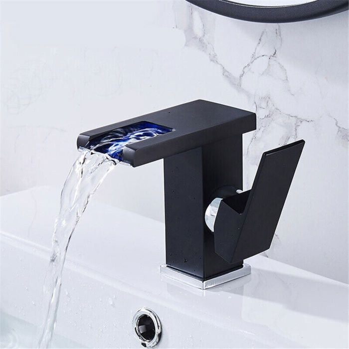 Robinet D'évier De Salle De Bain Cascade Noir Avec Bouchon De Vidange Pop-up Pour Robinet De 10,2 Cm, 2 Poignées, Robinet Central à 2 Ou 3 Trous Pour Lavabo De Salle De