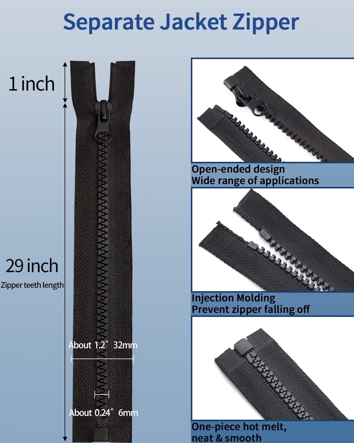 <br >Idéal pour les projets de couture ou les réparations : il suffit de couper, d'adapter et de coudre dans les vêtements, les équipements de plein air ou les tissus d'ameublement. Fermeture Eclair 70 Cm Noir Fermeture Éclair Séparable Noire - 65 Cm - Maille #8 - Pour Doudounes, Manteaux, Vestes Et Sacs Fermeture Eclair 65 Cm Fermeture Eclair Blouson À qui est destiné ce kit ? Couture et designer : réparez les fermetures éclair cassées ou créez des vêtements personnalisés. Robuste et durable : Dents en plastique en résine indéchirable et bande de polyester renforcée (34 mm de largeur). AERZETIX - C61208 - Lot de 2 Feretures éclair non séparables 12 c en Design divisible et manipulation pratique. Matériaux de qualité supérieure - Durable et indéchirable. AERZETIX - C61232 - Lot de 2 Feretures éclair non séparables 14 c en... Les amateurs de plein air : sécurisez les tentes ou les sacs à dos avec des fermetures résistantes aux intempéries. Largeur du rail de 6 mm pour un maintien stable sans nœuds. <br >Respectueux de l'environnement, non toxique et antirouille, parfait pour les amateurs de bricolage et les professionnels Nombreuses utilisations : Parfait pour les vêtements de plein air (tentes, anoraks), vestes quotidiennes, vêtements de travail ou rembourrage. Parfait pour les vestes, manteaux, doudounes, tentes et vêtements d'extérieur. Satisfaction garantie : Si vous avez des questions ou des problèmes, notre service client 24h/24 et 7j/7 est prêt – nous résoudrons tout problème dans les 24 heures ! <br >Dents en plastique combinées à un ruban en polyester renforcé et à un curseur métallique – Plus de 30 000 fois glisse en douceur, imperméable et lavable en machine. Utilisation universelle et facile à installer.
