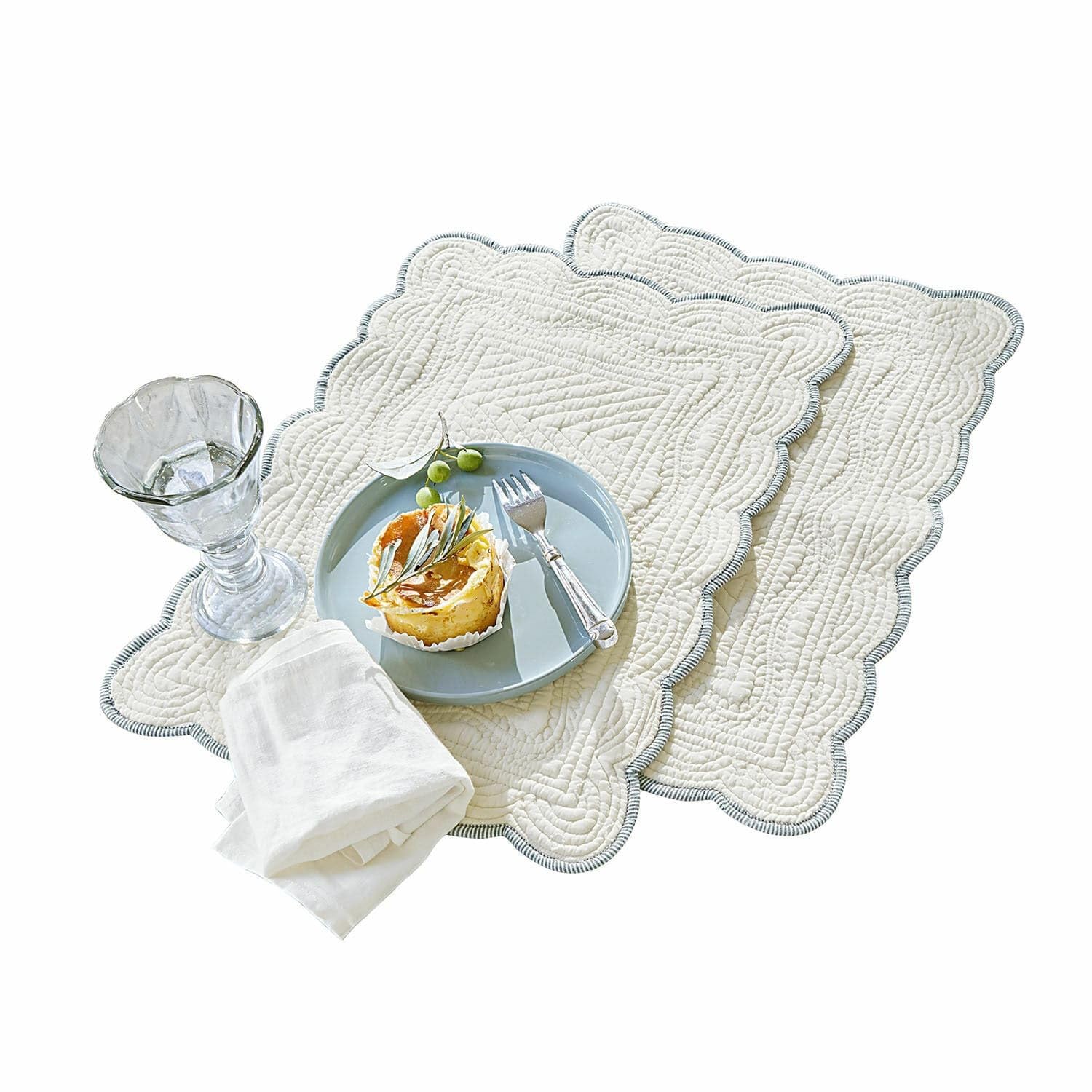 Dimensions: H/L env., 45/35 cm Ensemble de deux sets de table en coton crème avec quilting décoratif et bordure grise. Lot de 2 sets de table Fontienne. 14,95 €. Deux coussins décoratifs... Château de Sannes 1603 Luberon Blanc Brasil Ils vous séduiront également par leur polyvalence, puisque ce duo se mariera aussi bien avec une vaisselle rustique en faïence qu’avec une élégante porcelaine., Tissu en pur coton , Superbe relief , Garnissage moelleux , Couleur: blanc/bleu Set De Table Bleu Lot De 2 Sets De Table Coton/lin Trattoria Blanc/bleu La Redoute Decoration Mural Plat tournant verre effet... Paniere a pain bleu raye... Alternative chic à la nappe, ils apportent une touche très chaleureuse et des plus conviviales. De par leur solidité, ils se prêtent parfaitement à une utilisation au quotidien et sont lavables en machine.