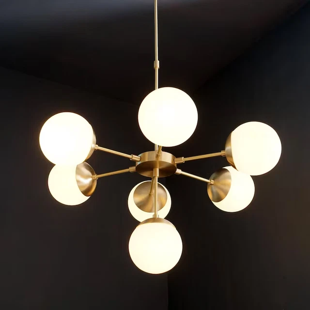 Lustre Sputnik en verre doré à 6 lumières : le lustre en bois dispose d'un corps de lampe en noyer et d'un cadre en métal de haute qualité qui dégage une texture fine et une durabilité, l'abat-jour en verre côtelé blanc lait émet une lumière uniforme et douce, créant une atmosphère confortable. Les courbes gracieuses et la finition dorée du lustre globe en verre lui confèrent un air d'élégance du milieu du siècle, ce qui en fait un ajout remarquable à... Contenu de l'emballage : 1 grand globe lumineux en verre de lait à 6 lumières., 1 x accessoire. Lorsque vous allumez la lumière, elle ajoute une atmosphère romantique, chic et lumineuse à votre pièce. Nombre de lumière : 1., Description de la garantie : garantie de 24 mois Tension : 110 V., Puissance maximale : 60 W. Nom : grand globe en verre de lait à 6 lumières. Source de lumière : E26 (ampoules non incluses). Matériaux : métal + verre + bois. Taille du lustre vintage en bois : le lustre industriel rétro rustique en bois à 6 lumières, largeur : 72 cm, hauteur : 48 cm, diamètre de l'abat-jour : 15 cm, auvent : 15 cm. Et si vous manquez certaines pièces, veuillez nous le faire savoir, nous vous enverrons également 1 manuel (français non garanti)., Conseils : 1., Veuillez éteindre l'alimentation avant l'installation pour éviter les blessures., 2., En raison des différents outils et méthodes de mesure, la taille du produit peut varier de 1 à 3 cm. Globe Pour Lustre Ancien Flyrose Lustre Globe Moderne Du Milieu Du Siècle Lustre En Verre De Lait Nervuré à 6 Lumières Lustre Rustique En Bois Blanc Et Doré Luminaires De Globe En Verre Ancien Idéal et large application : le lustre encastré multi-lumières est simple mais distinctif, rustique avec une sensation moderne, ce lustre sputnik en forme de boule de verre s'adaptera bien à la salle à manger, au salon, à la chambre, à la chambre principale, au bureau, à la chambre d'amis, à la chambre d'enfant, à la salle d'étude, à l'îlot de cuisine, à la ferme, au hall, au couloir, au bar, au restaurant, à l'escalier, au café, au hall et à d'autres endroits. Globe verre pour lustre - Trouvez le meilleur prix sur Ce produit contient 6 abat-jour, s'adapte au E12, a une puissance maximale de 60 W et peut fournir un éclairage spatial de 12 à 20 ㎡. Vous donne une touche rétro vintage intemporelle et une esthétique moderne et épurée, ajoute une touche vibrante à n'importe quelle pièce Source de lumière : culot E26 (ampoule incluse), tension : 110-240 V pour le monde entier. Si l'abat-jour en verre est cassé, endommagé ou fissuré, ou s'il manque certaines pièces, veuillez contacter le vendeur « Flyrose Lighting » via le numéro de commande, nous pourrions vous envoyer un globe de rechange. Rre lustre ou lmpe à suspension Spoutnik à neuf brnches, moderne du...