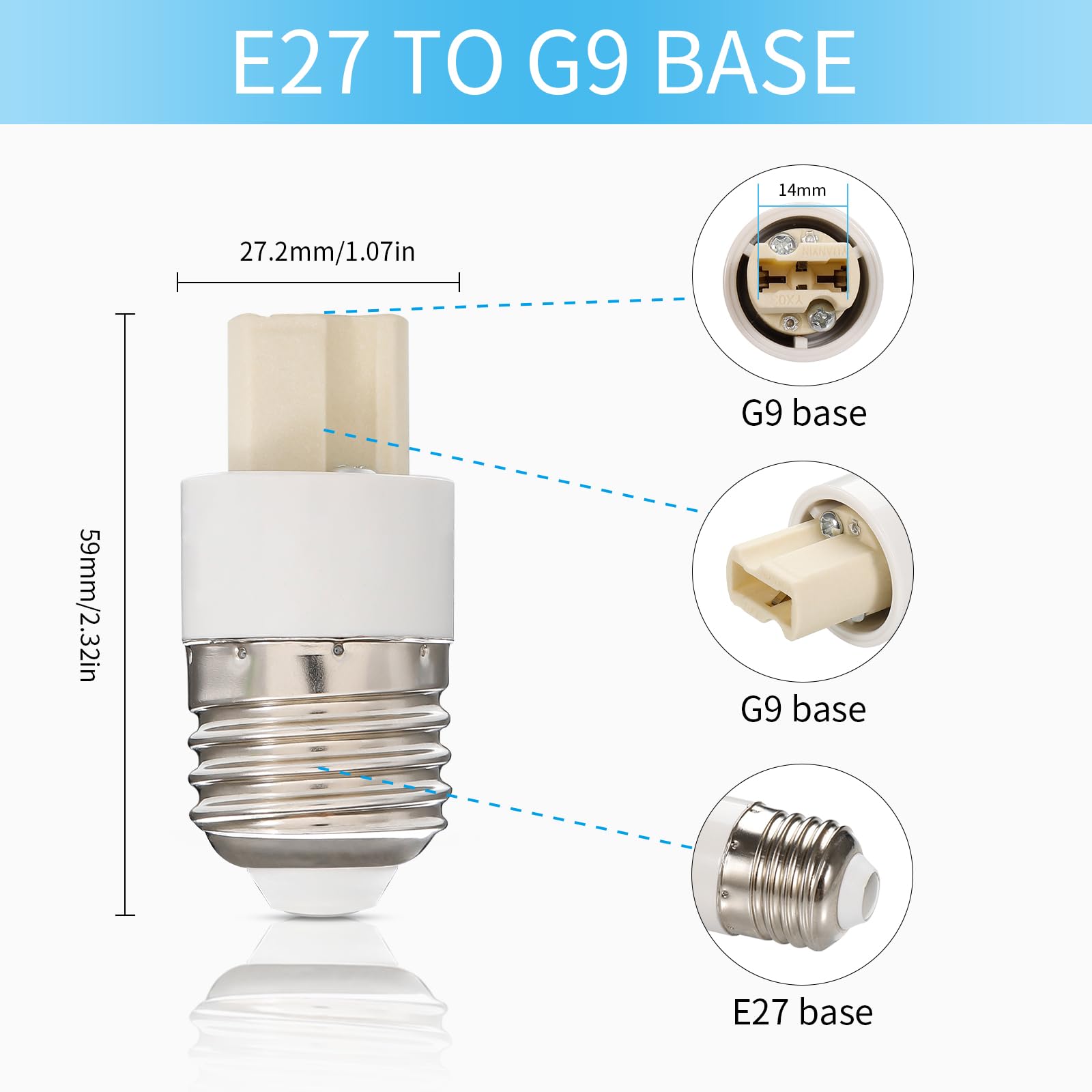Fabrication de qualité supérieure. Adaptateur pour ampoule E27 vers G9., Forme compacte. E14 adaptateur-douille pour ampoule G9 halogène ou à LED (Danell... Adaptateur Douille Ampoule Ett Douille D'adaptation Pour Ampoule E14 Vers G9 Douille Pour Ampoule 100w G23 à E27 E26 socle douille LED halogène ampoule l... – Grandado Convient pour toutes les ampoules 230 V.